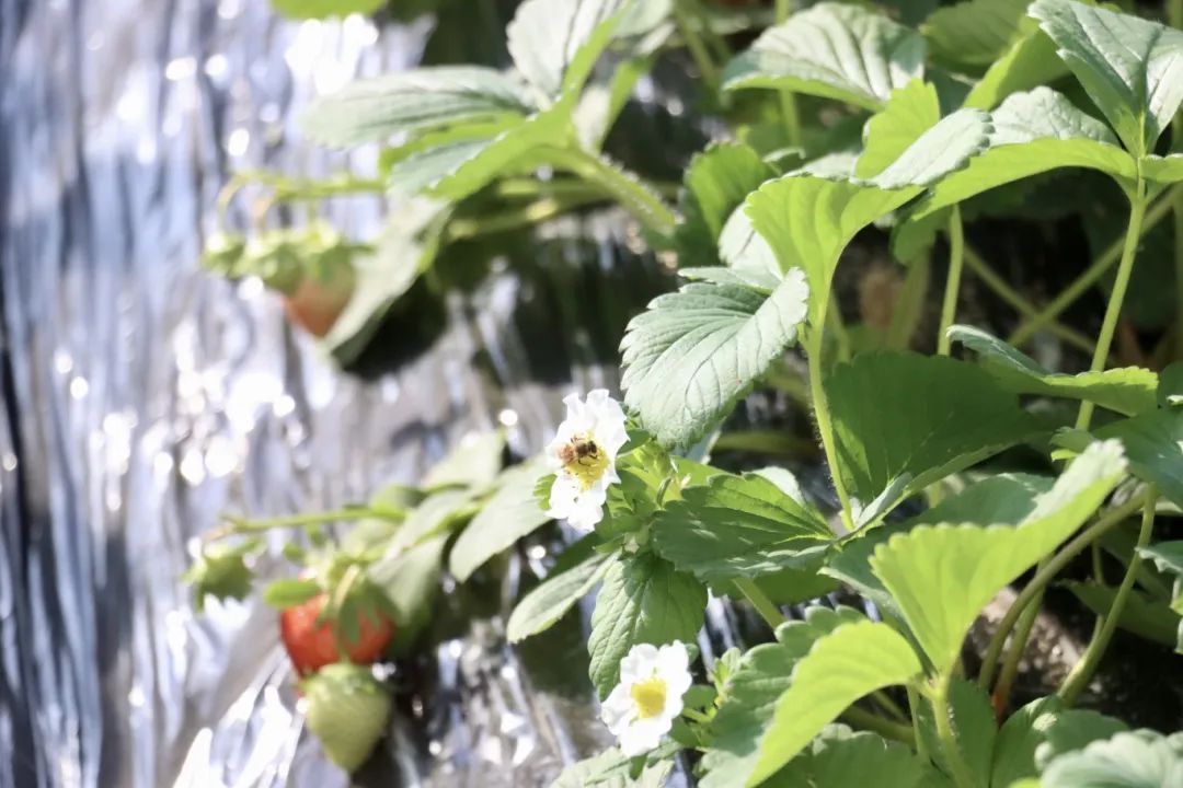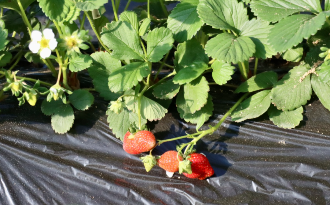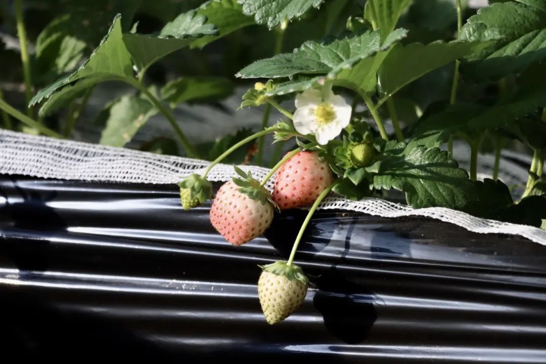 同时,新技术也为合作社的草莓种植提供了重要支持。基地示范应用草莓超高垄半基质栽培模式4亩,相比传统的种植模式,超高垄半基质栽培技术不仅能提高地温、抗寒,让草莓早熟,还能预防畸形果,栽培高度也更方便采摘;示范草莓套种技术,将草莓和柚子、柠檬、丑橘高矮成层,相间成行地种植在一个温室里,颜色缤纷,味道香甜的水果一起成熟,为游客们带来了视觉与味觉的双重盛宴,大大增加了采摘的丰富度和体验感。