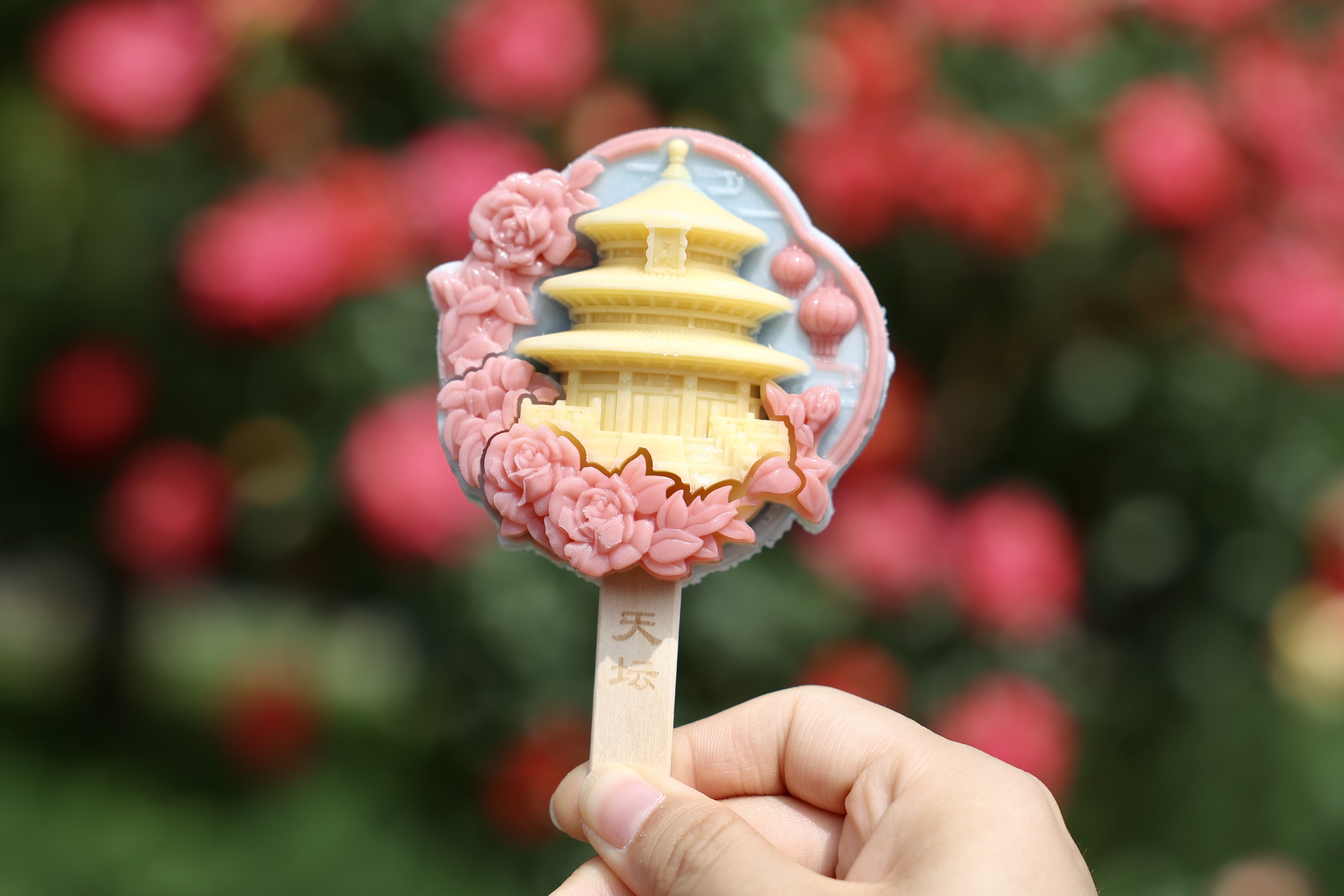 (天坛公园今年新推出的月季主题冰淇淋。何建勇摄)