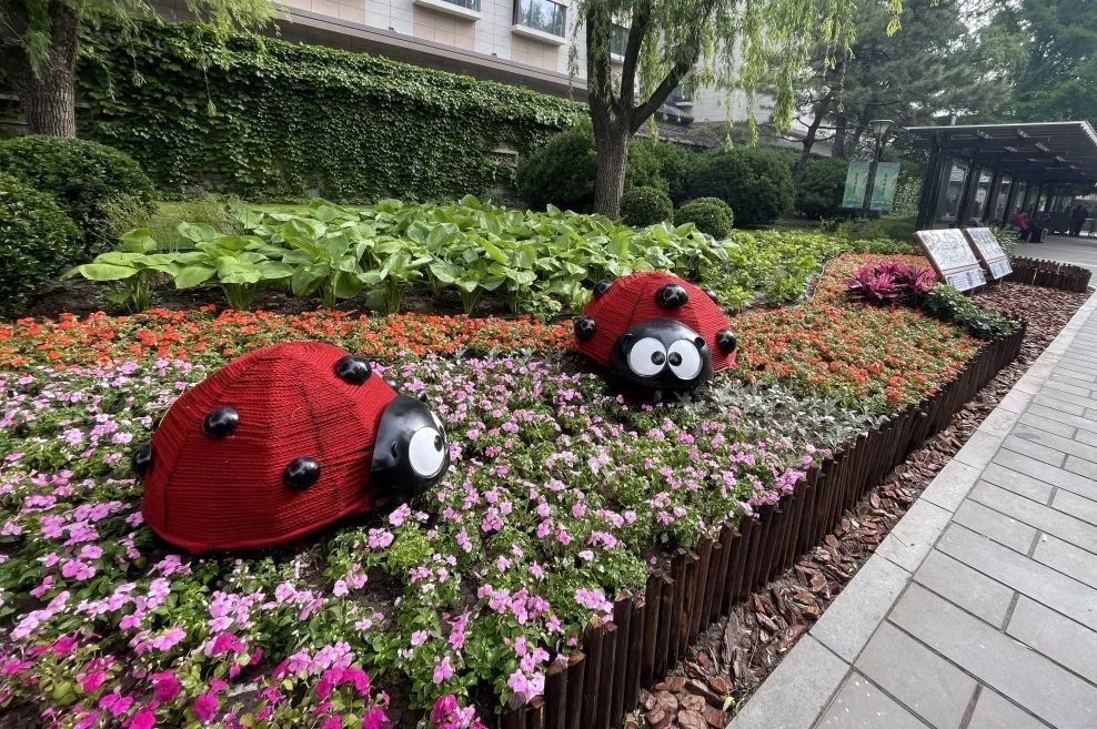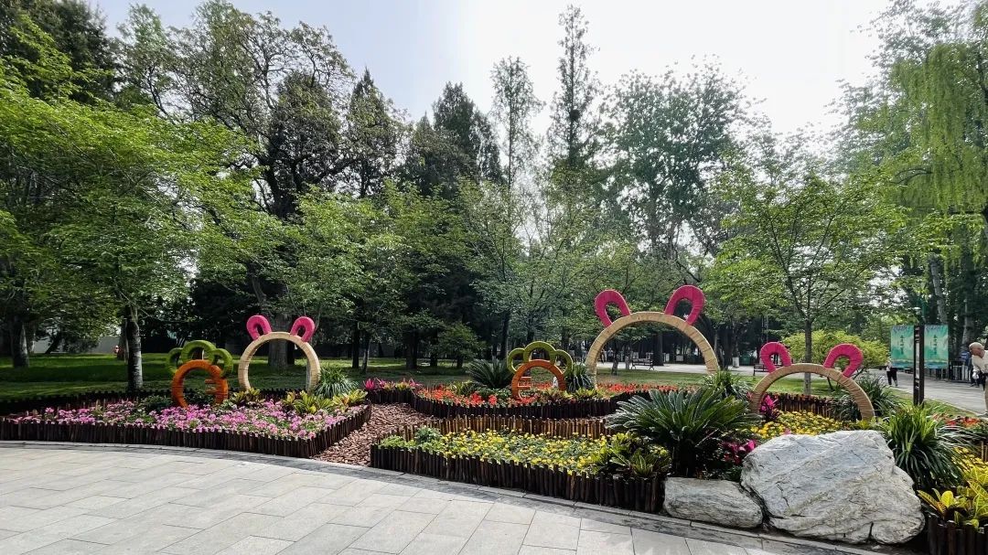 位于公园东门内“茁壮成长”“林下好朋友”以及南门内“兔子爱萝卜”等3组新增的主题花境各色花草俏丽,尽显绿意盎然,吸引了市民游客驻足拍照。值得一提的是,公园充分将节俭及环保融入到春花观赏季环境布置之中,并首次使用彩色麻绳制作,提升小品景观的质感和精细度,延续加强生态环境保护、建设美好家园的理念。同时配以非洲凤仙、孔雀草、变叶木、女贞球等20余种高低错落、丰富明艳的花卉绿植组合烘托主题,通过呆萌可爱的“七星瓢虫”、富有活力的“绿叶”及活泼灵动的“小兔子”造型展现出城市与自然和谐共存的生态之美,传播保护自然界生物多样性。为了让大家更加近距离观赏花卉,今年将花境设计成步入式,并新增加了树皮铺装,游走在花境其间,让人心旷神怡。