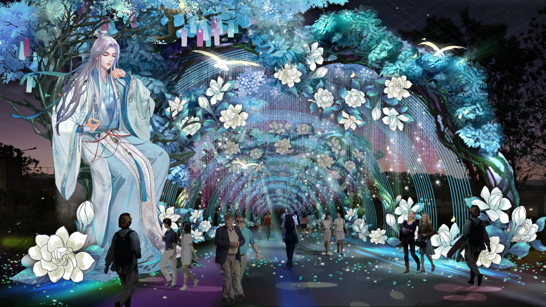 灯会还从科技、游戏、潮玩、新能源等现代和未来元素中获取创作思路。同时,温榆河公园的地标“茑屋”和“芸上梯田”也将通过全息投影和光雕投影,换上流光溢彩的外衣。