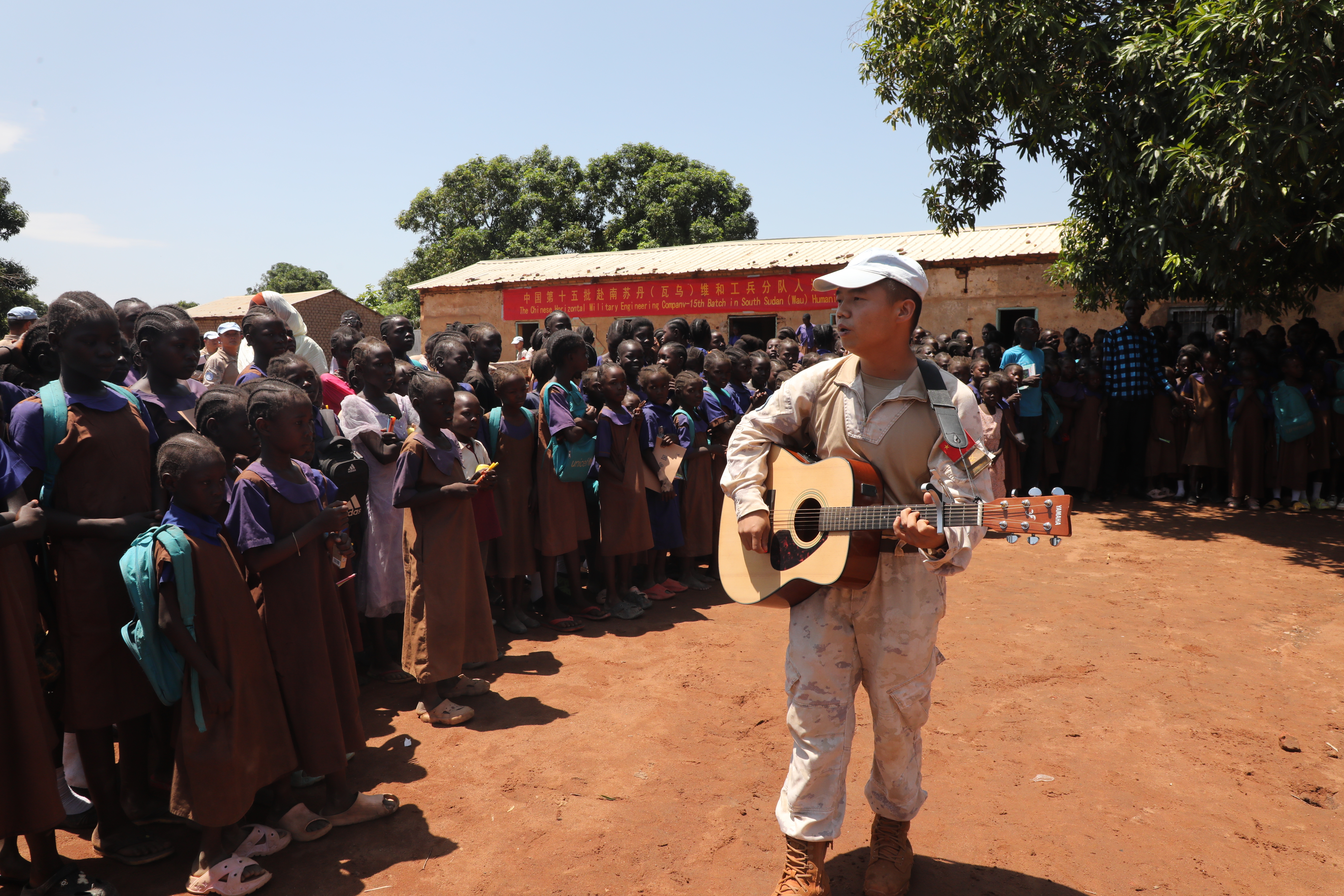 随后,维和官兵与师生们展开互动交流,为他们讲述中国故事,教写中国汉字,孩子们在维和官兵的指导下,亲自尝试书写中国汉字,感受中国魅力。与此同时,维和工兵还为师生带来了吉他表演等节目,现场不时传来欢声笑语。