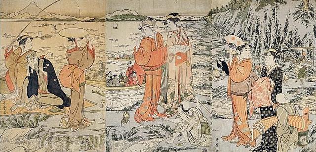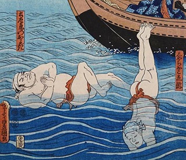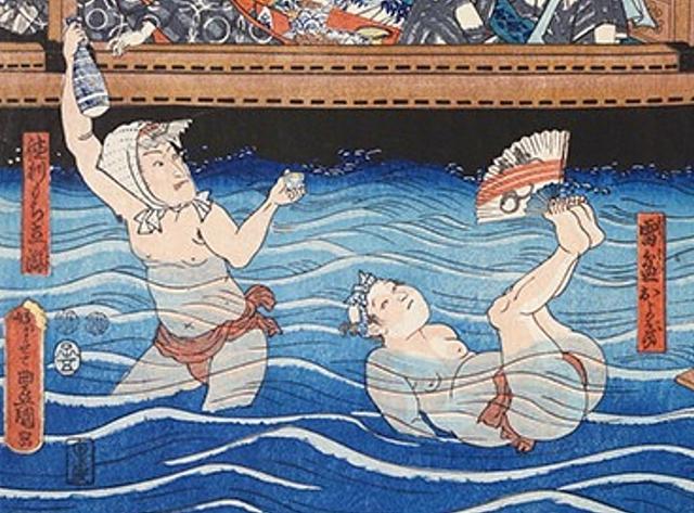 日本浮世绘海景:江户艺妓陪你去海边裸泳
