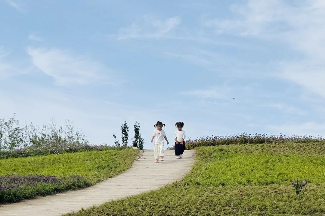 映水停云景区山坡上近3000平方米的“烂漫·山野花坡”栽植了八种本土花卉,在提升生态多样性的同时,也为游客带来视觉享受。
