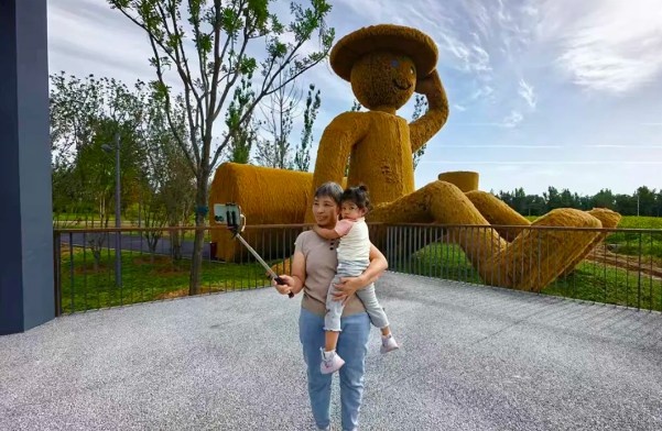 田畔寻耕区域则突出农业文化主题,“稻梦云田”稻草人生动再现传统农耕韵味,搭配圆形相框打卡点,形成远近皆宜的游览亮点。