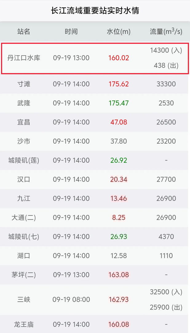 长江水文网数据显示,9月10日14时,丹江口水库水位为155.38米,9月19日13时,水库水位达到160.02米。九天时间, 丹江口水库水位累计攀升4.64米。