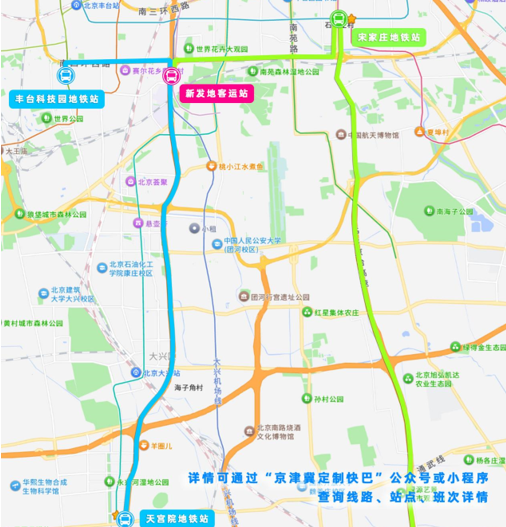 线路规划精准覆盖两地关键交通枢纽与人口密集区域,共设置两条主线,全长约90公里。线路一为霸州汽车站西门公交站往返天宫院地铁站、丰台科技园地铁站、新发地客运站,进京发班时间05:40、06:20,出京发班时间17:50、18:20;线路二为霸州汽车站西门公交站往返宋家庄地铁站、新发地客运站,进京发班时间06:00,出京发班时间18:00。全线在北京端设新发地客运站、丰台科技园地铁站等4个上下客站点,确保与城市轨道交通的近距离衔接;霸州端覆盖李少春大剧院、温泉小区、霸州一中、南孟等多个站点,实现“就近上车、便捷换乘”的出行体验。