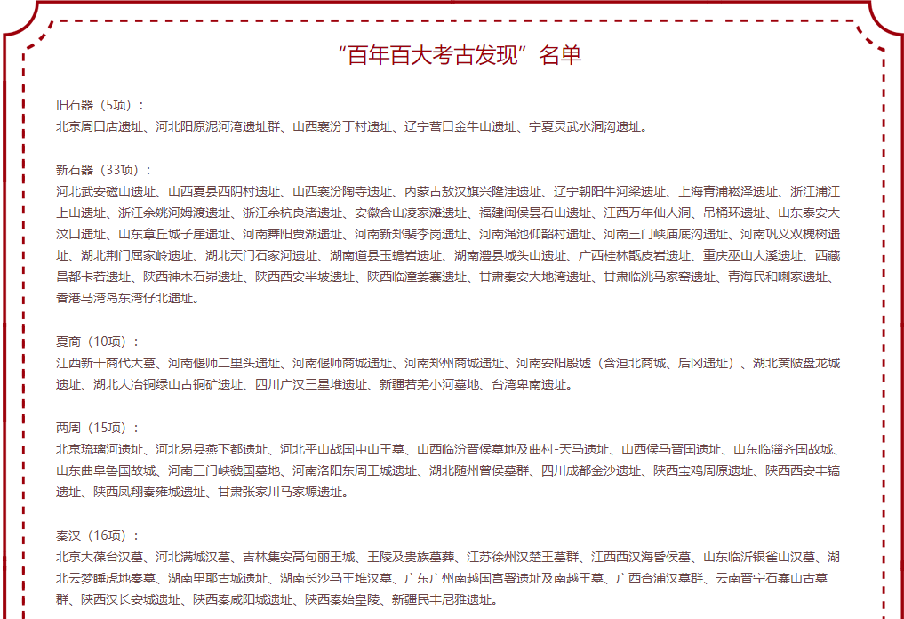 附:“百年百大考古发现”名单