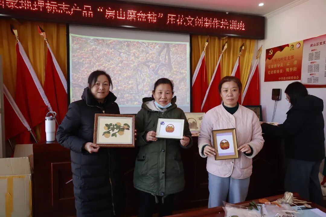 培训围绕材料识别、保色防褐、构图设计及产品市场化等环节展开,学员技能掌握率达85%以上,部分优秀作品已具备市场展示条件。该项目有效弥补鲜柿销售的季节性短板,预计可为参与农户年均增加农闲收入3000—5000元,同时为柿农提供灵活就业途径。通过文化赋能,进一步强化“房山磨盘柿”品牌内涵,提升产品溢价空间。