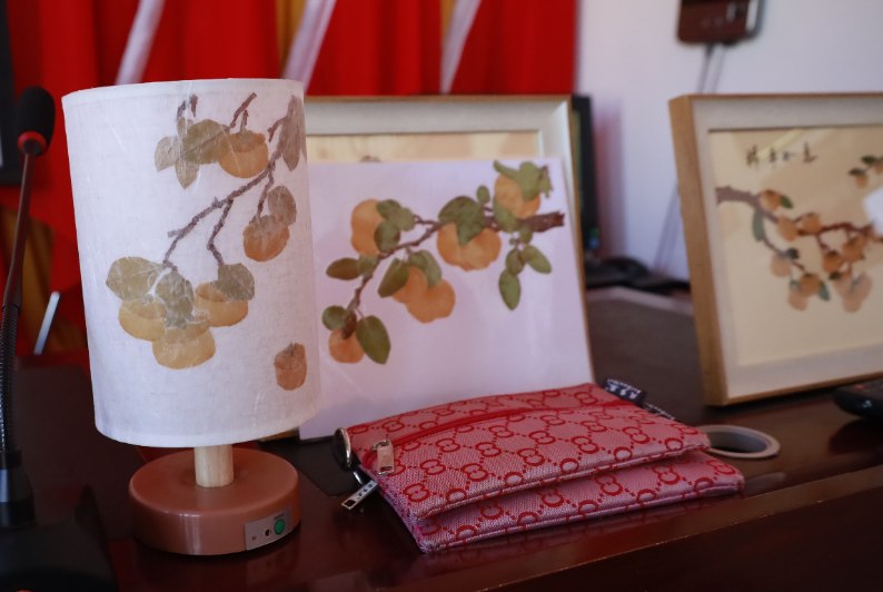 压花艺术是以植物材料经脱水、保色、压制等工艺制成平面花材,并进行创意拼贴的艺术形式。房山区聚焦磨盘柿产业链延伸,将以往废弃的柿皮开发为具有地域特色的装饰画、文创灯饰等产品,推动产业从“卖果实”向“卖文化”“卖体验”转型,实现资源再利用与价值提升。