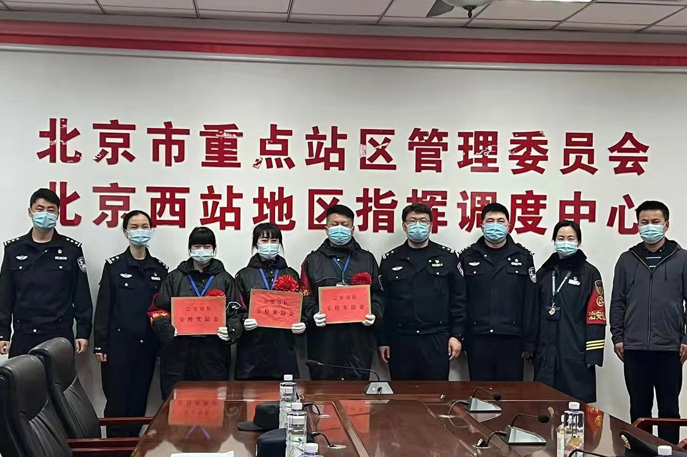 为及时表彰先进,鼓舞安检队伍士气,公交警方对表现突出的安检员及时进行表彰奖励。3月1日以来,公交警方会同运营企业先后到地铁1号线天安门西站、地铁2号线车公庄站、地铁5号线和平西桥站、地铁6号线慈寿寺站、地铁7号线广渠门外站、地铁9号线北京西站等多处安检点“送奖到岗”,对认真履职,取得的突出成绩的200余名安检员分批进行通报表彰,并颁发奖励。(图片来源:北京公交警方)