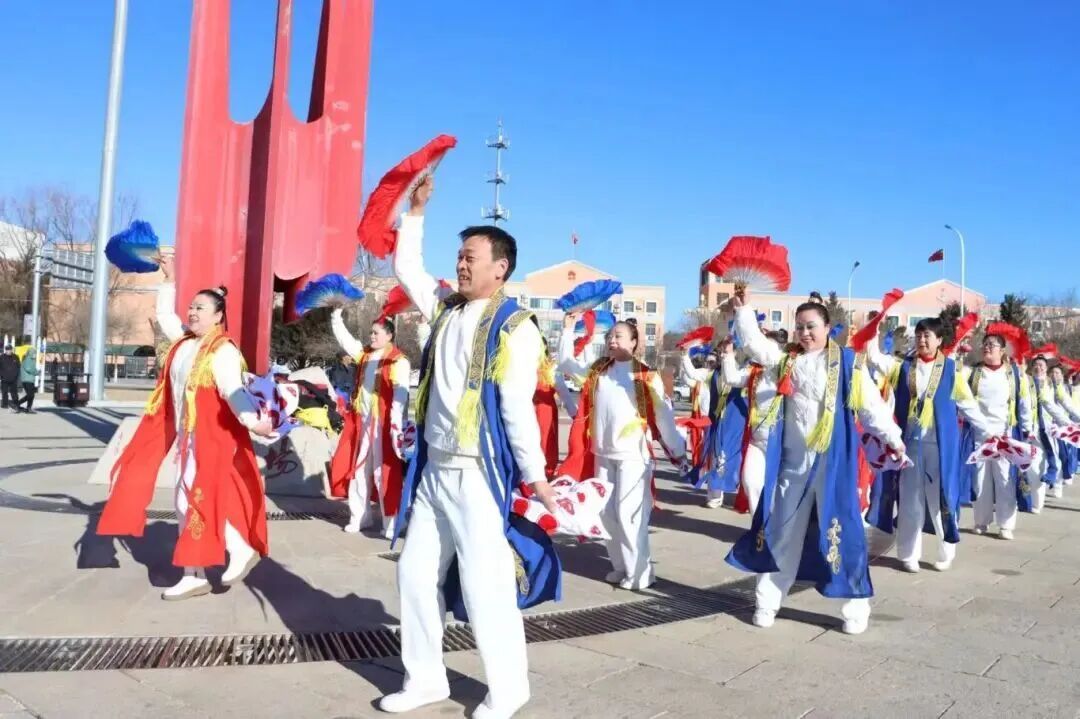 边塞文化与民俗歌舞交融,粗犷豪放、热烈喜庆,红绸飞舞气势恢宏。