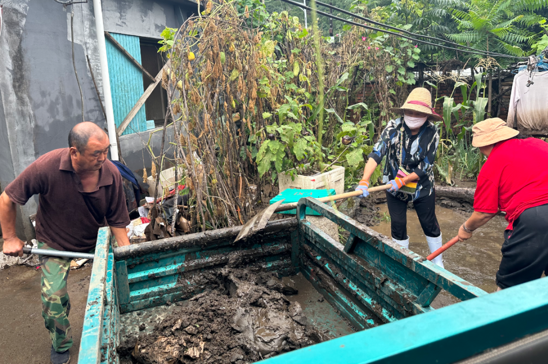 在党员干部的积极带动下,许多村民也纷纷参与到重建家园的工作中来。72岁的胡文普家中受灾严重,暂时无法居住,四名村民主动帮他清运淤泥和被雨水浸泡过的杂物。看着乡亲们为自己忙碌的身影,胡文普满是感激:“我腿脚不好,干不了重活,他们来帮忙,真是太感谢了。村里还把我安排住在村委会,吃喝不愁,特别安心。”