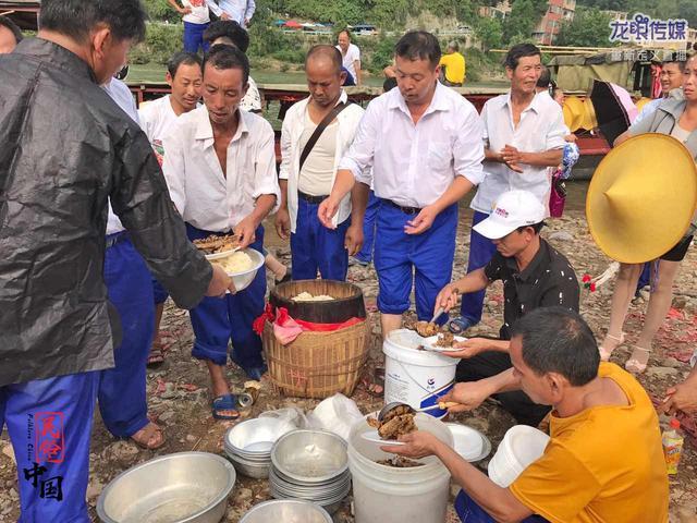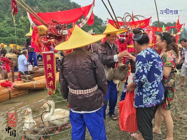 所以龙舟节当天必不可少的一环节就是”分龙肉“,龙肉就是指猪、牛、鸡、鸭、鹅肉。