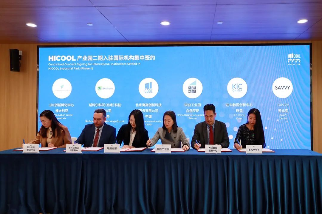 仪式上,顺义区及北京海外高层次人才协会相关负责人作顺义区投资环境推介和HICOOL大赛及产业园介绍,HICOOL产业园二期首家金融服务机构——中国银行相关负责人作服务推介。5家入驻国际机构和6家入园企业集中签约。