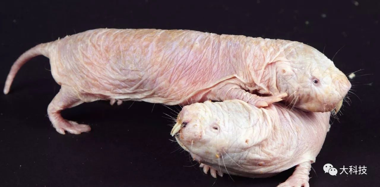 无毛鼹鼠又称裸鼹鼠,生活于非洲西部,它们像昆虫一样由一个“女王”统治,在地下洞穴过着群居生活。从目前研究来看,这是一种非常奇特的动物,无毛鼹鼠对癌症能完全免疫,而且抗老化能力强,寿命超过30年,是其他鼠类生物寿命的10倍。它们还有一项不同寻常的能力:能快速向后跑,而且与向前跑时速度一样快。地下环境又热又潮湿,食物缺乏,但这些特性使它们能适应地下洞穴,并生存下来。