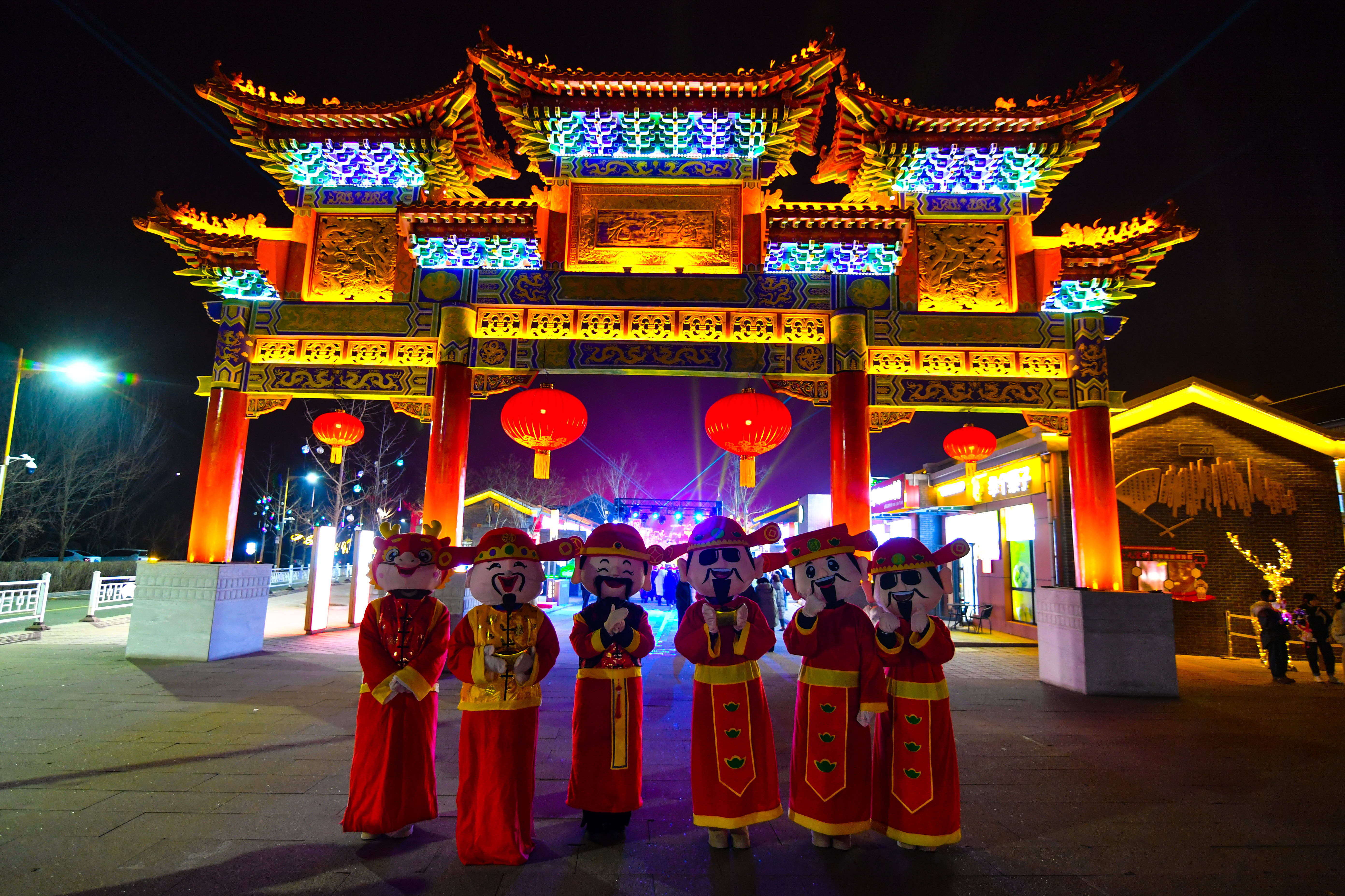 第十届鼎盛皇家灯会的亮相,为承德本地市民及外地游客带来了新的体验和互动,本届灯会更是推出几大新亮点,繁华更甚、新意更多,让观众一饱口福。新年玩转元宝街,从“巡游”开始!街区特设百人巡游队伍,歌舞翩跹,所有演员队伍组织每晚五点半自东西向内巡游,财神,舞龙,市井百态;年味,风味,齐聚一堂。灯会特邀北方非遗表演团队,作为有着鲜明地域特色的民俗表演,秧歌、舞龙是我国北方地区年俗活动中的固定节目,正月里有秧歌才有年味儿,也是庆贺过去一年的劳动收获、祈福来年风调雨顺的一种方式。秧歌队伍中的人物角色个性鲜明,服饰装扮惟妙惟肖,人们敲着铿锵的锣鼓,和着嘹亮的唢呐,作出扭、摆、走、跳、转的动作,尽情欢舞,喜庆热闹。金色长龙遨游起舞追随着龙珠,舞龙表演的古韵与新式碰撞不断擦出视觉“火花”。