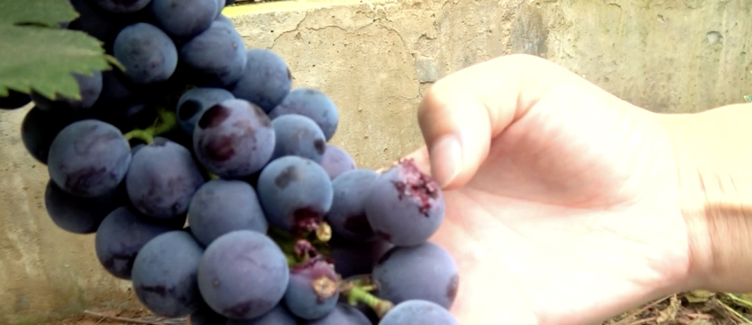 为了防止葡萄继续腐烂,种植户现在每天的主要任务是检查每一串葡萄是否出现腐烂现象。在另一个葡萄大棚,种植户告诉记者,由于品种皮薄甜度大,腐烂的现象非常严重。