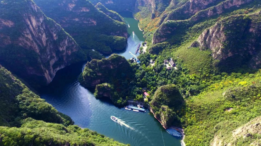 这里,山峦叠嶂,碧水环绕,四季皆景。国庆期间,峡谷内的树叶逐渐染上了金黄与火红,与碧绿的湖水相映成趣,绘就出一幅幅动人心魄的秋日画卷。