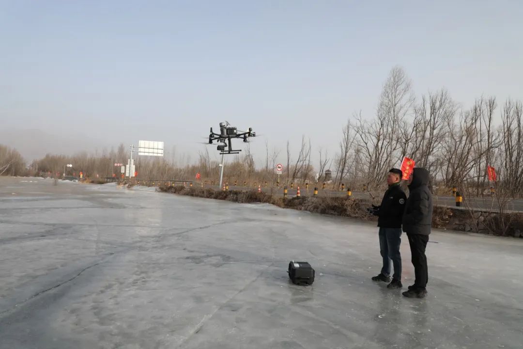 1月26日,在官厅水库冰面,北京八达岭低空科技发展有限公司无人机团队正在协助区农业农村局综合执法大队开展冰面违法垂钓行为拍照取证及喊话提醒作业。巡查过程中,无人机凭借灵活机动的飞行优势,快速穿梭于冰面各处,用高清拍摄视角,清晰捕捉违法垂钓细节并取证。同时利用高分贝喇叭优势,及时进行远程警告,全方位助力执法行动的高效开展。