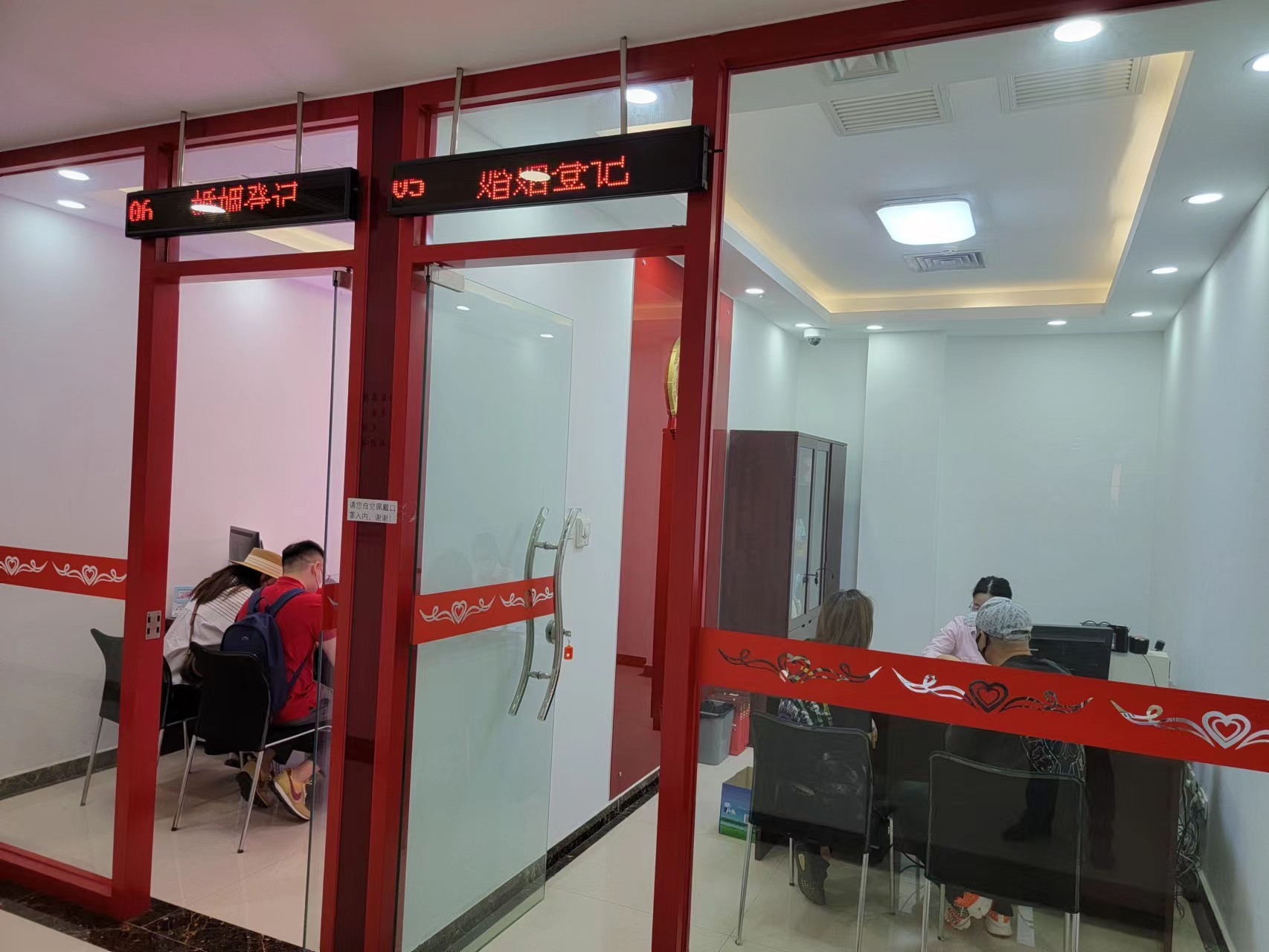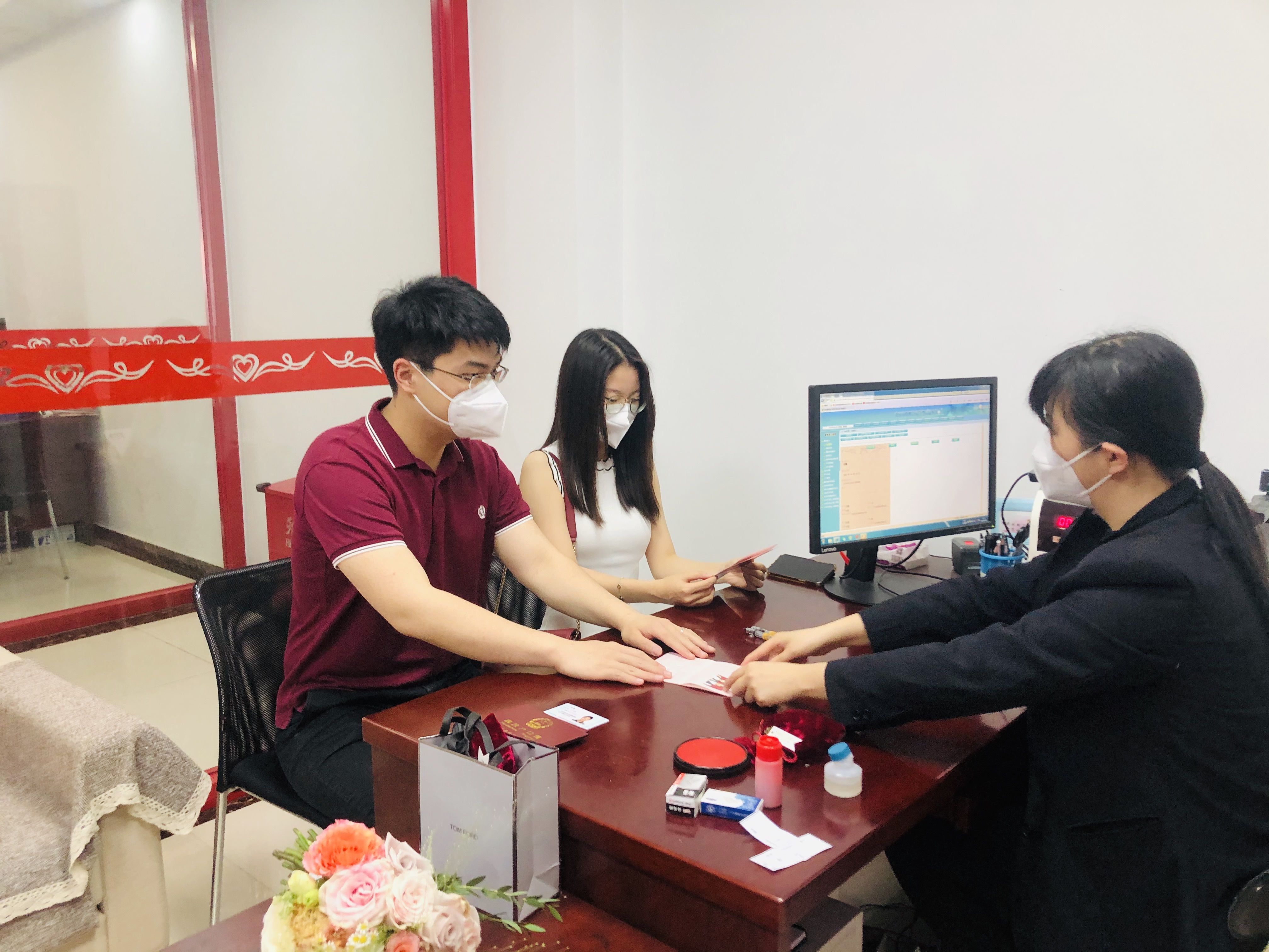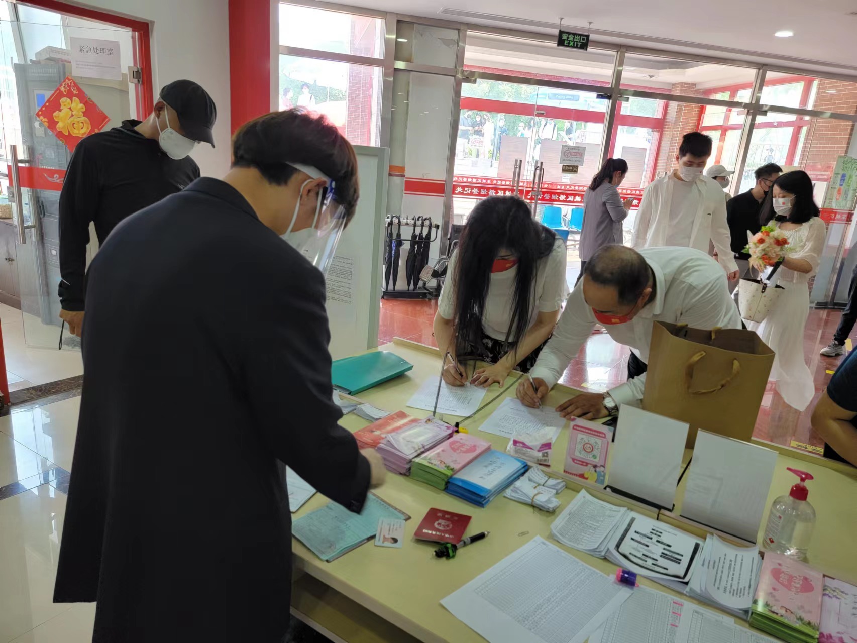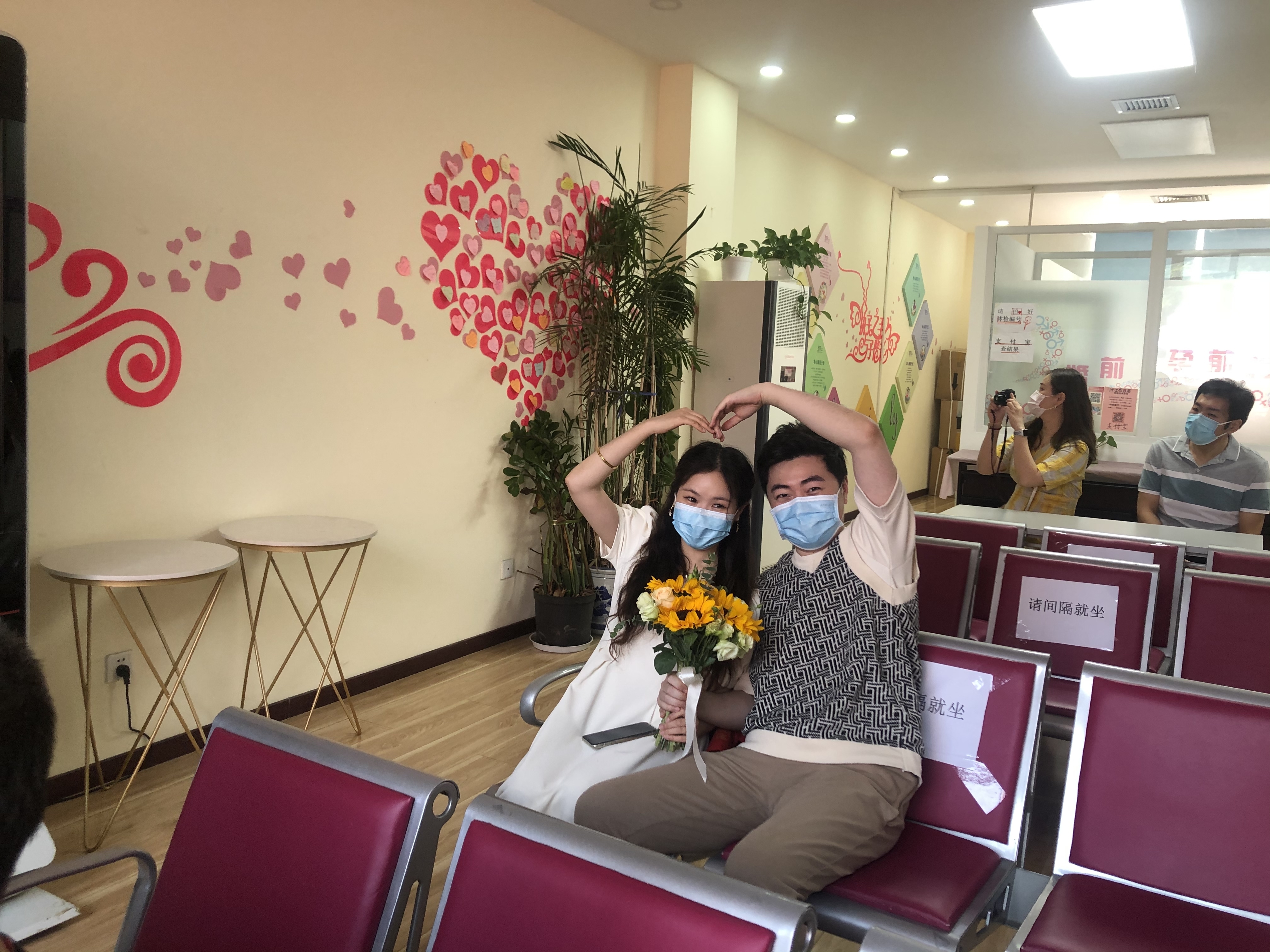 (记者 贾元真)因为谐音“我爱你”,所以很多新人会选择在5月20日或5月21日领证结婚。今天一早记者来到东城区民政局婚姻登记处的登记大厅,这里一共有10个登记室,前来领证的市民非常有序,大家全部佩戴好口罩,听到叫号后由工作人员引导进入前台审核证件,再登记领证。根据市政府及市民政局疫情防控政策要求,进入婚姻登记处内的所有人员,须确保本人“健康宝”无弹窗,并持有48小时内核酸检测阴性证明。在办理登记前14日内无中高风险地区出行记录,办理登记及排队侯登时佩戴口罩,并配合扫码测温。
