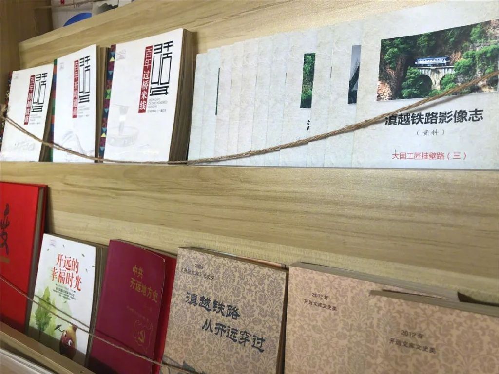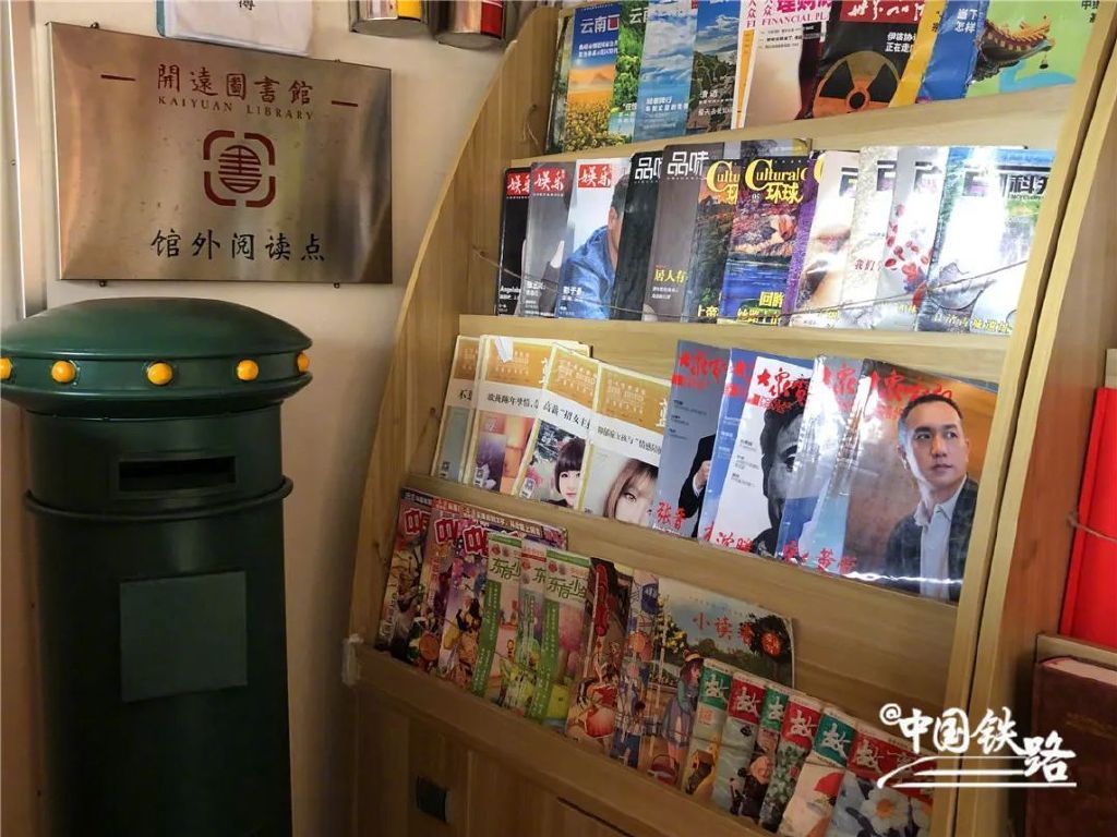 列车一角设置了开远图书馆馆外借阅点,提供开远地方文献等书籍200余册。