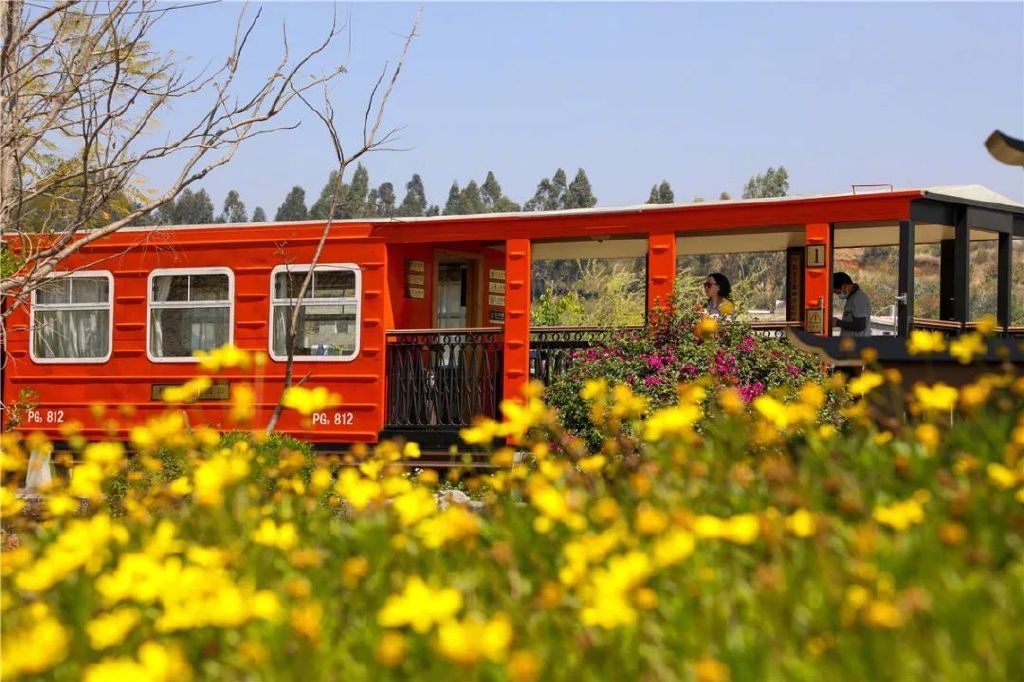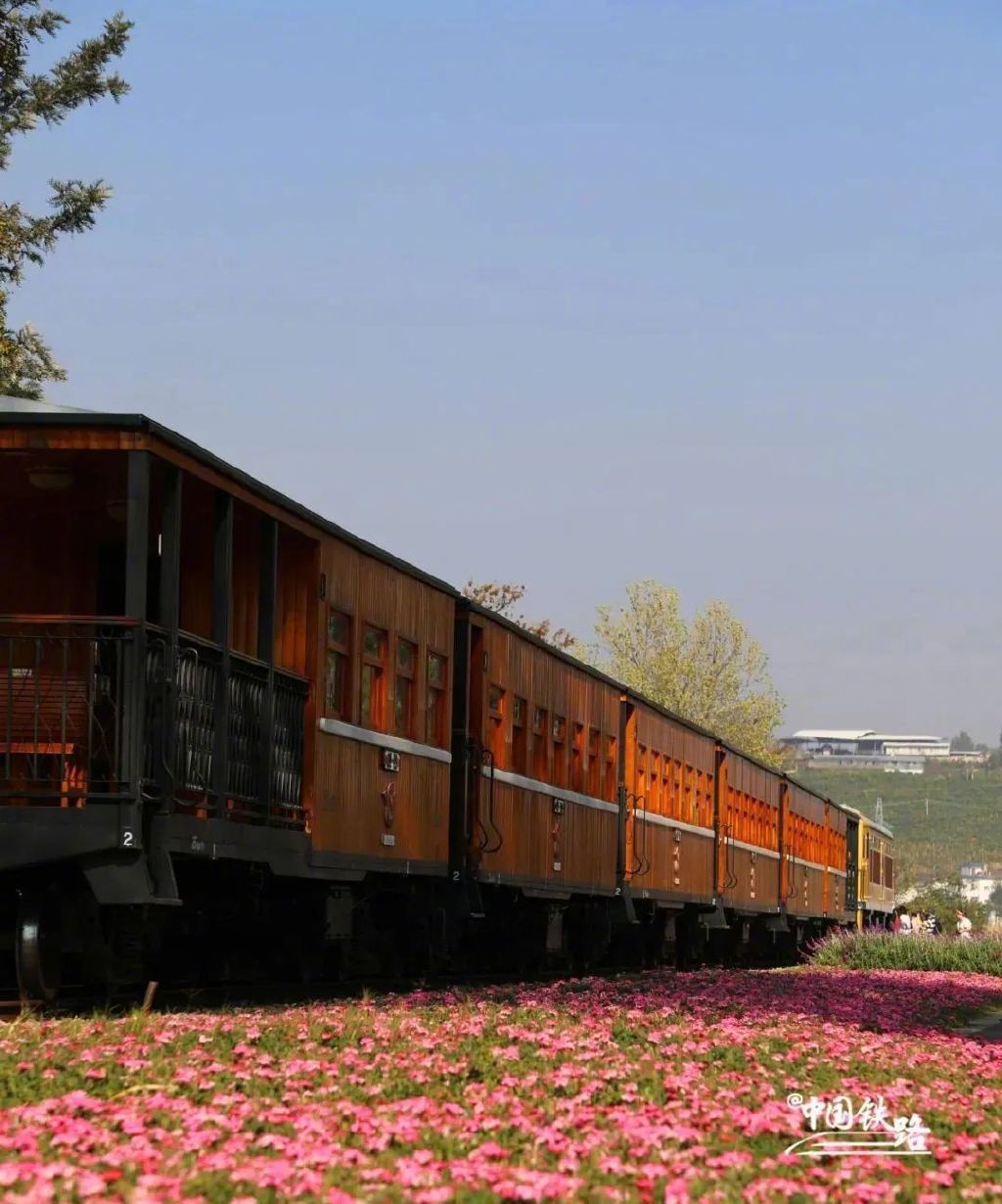 列车由东风型米轨内燃机车牵引,经过改造的木质结构车厢,随手一拍都是独具风格的美图。