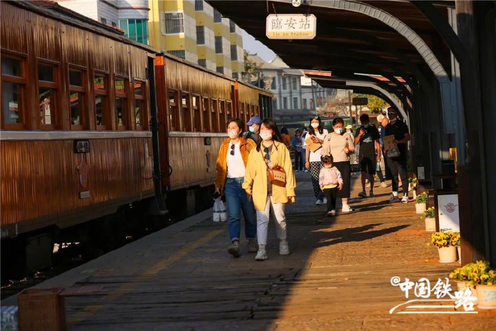 列车始发的临安站,位于蒙宝线建水东站旧址,在原有风貌基础上,车站被打造为铁路主题公园。