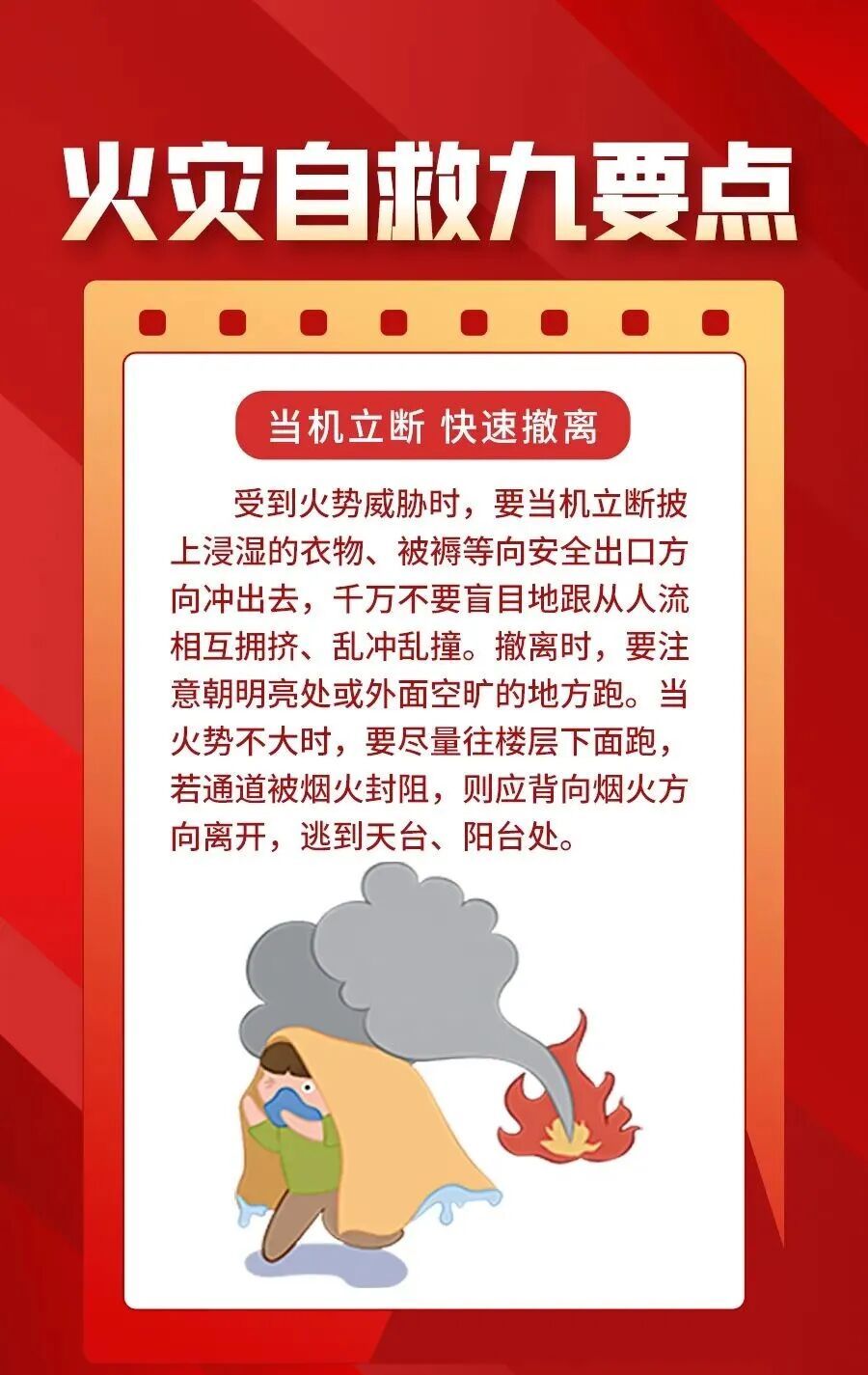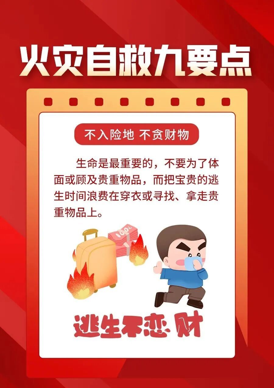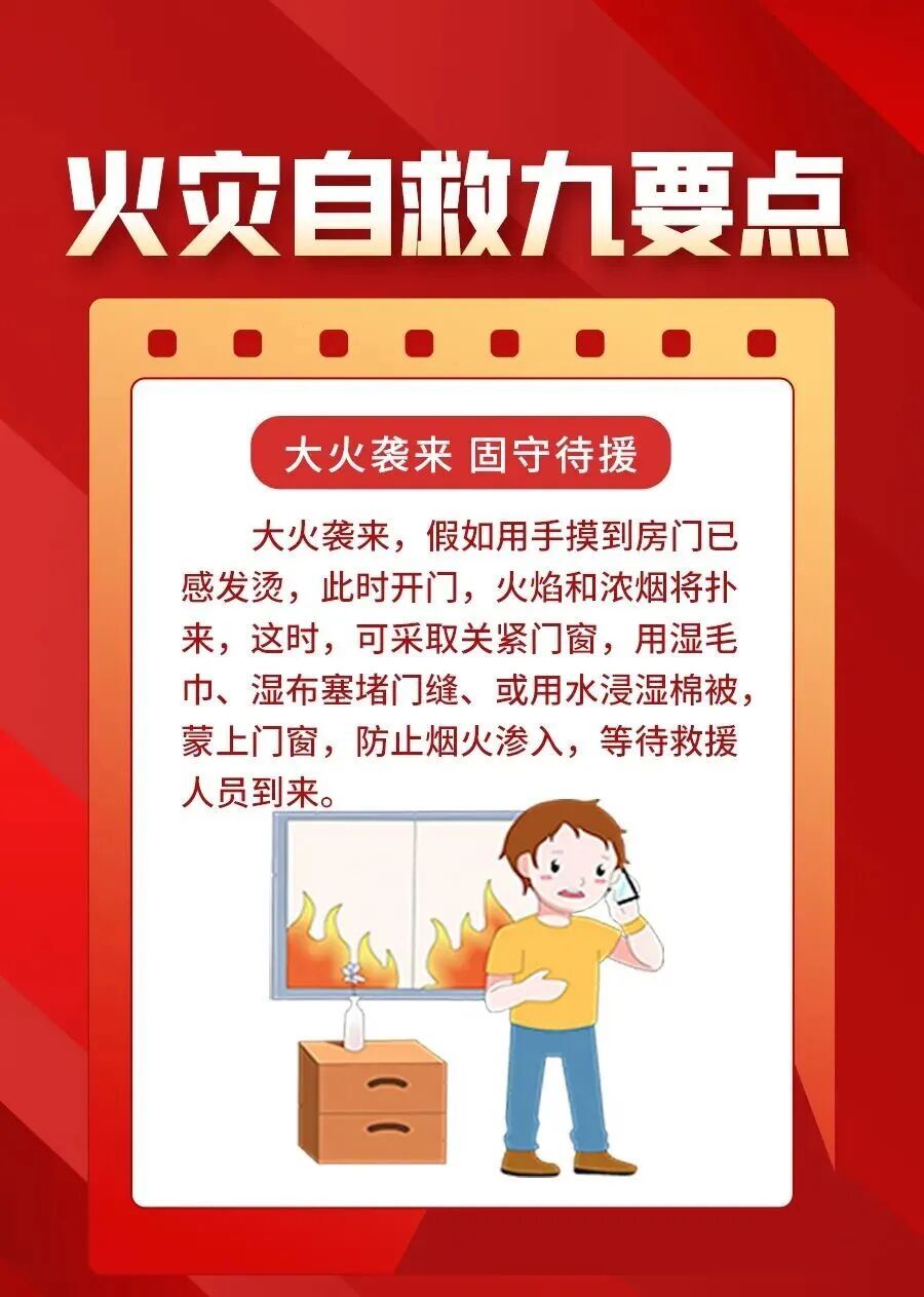 火灾现场,除了等待消防员救援,更重要的是掌握逃生知识,抓住最佳逃生时机。如遇突发火灾,火场逃生“九大要诀”请牢记于心!
