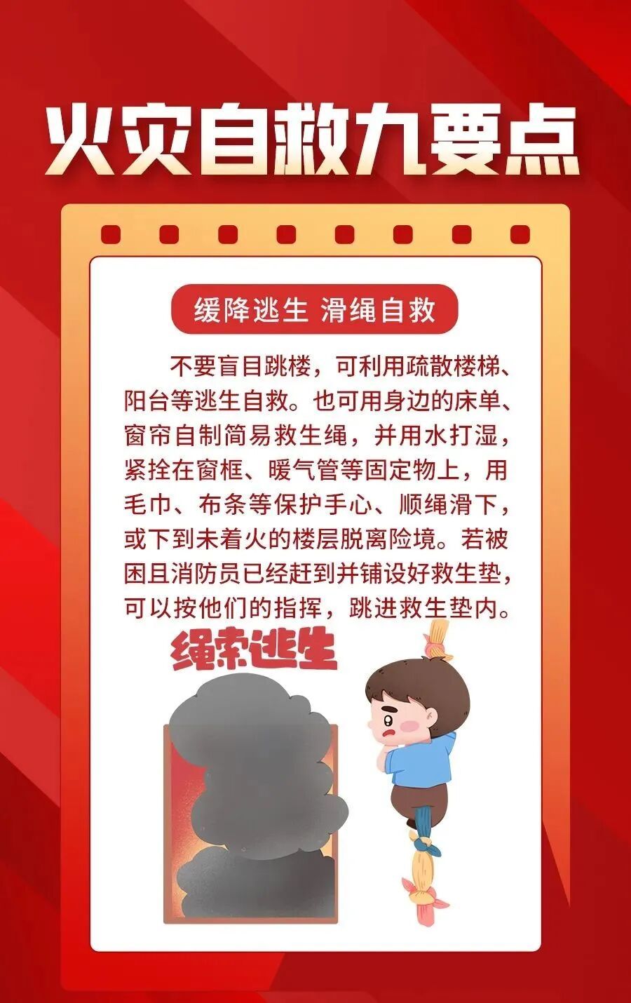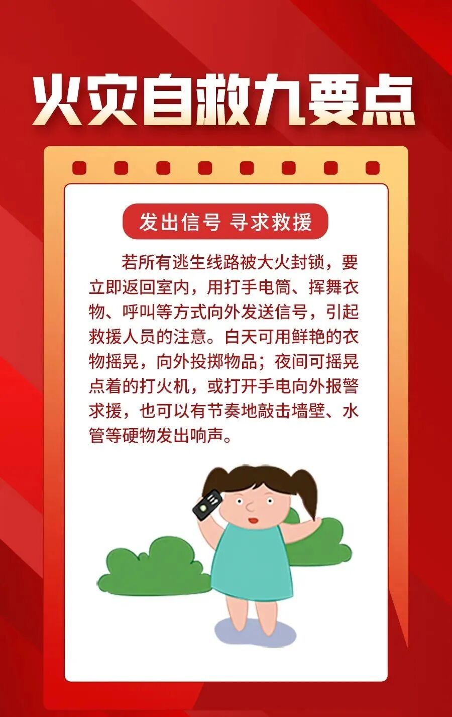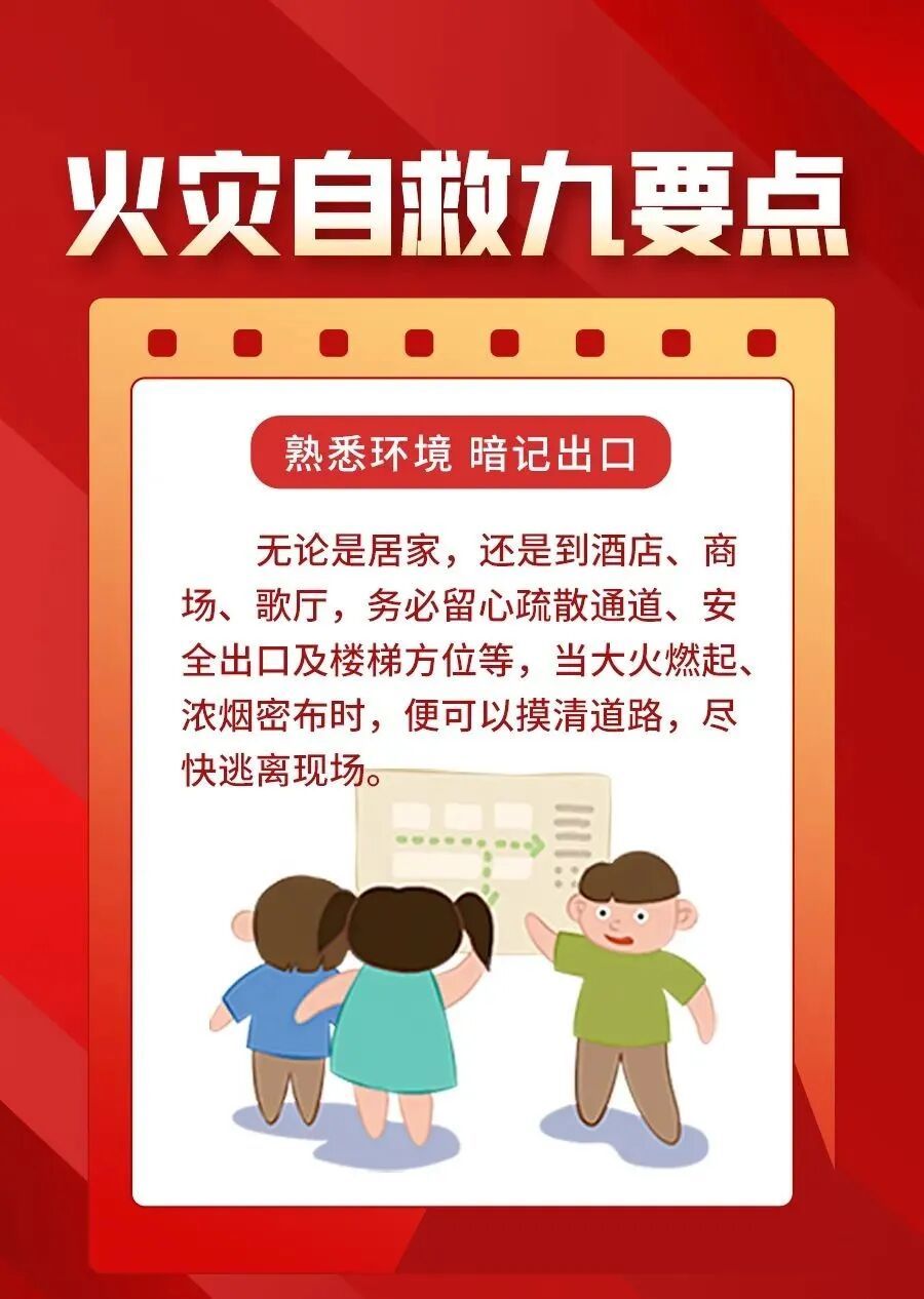 火灾现场,除了等待消防员救援,更重要的是掌握逃生知识,抓住最佳逃生时机。如遇突发火灾,火场逃生“九大要诀”请牢记于心!