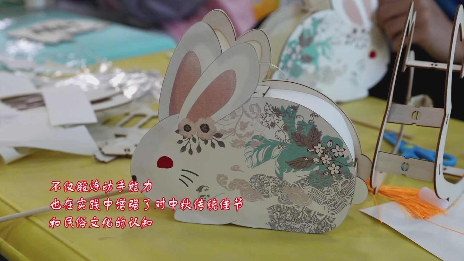 拼装支架、粘贴玉兔纸、安装彩灯…在车站路社区,小朋友们在老师带领下,一起制作玉兔花灯,不仅锻炼动手能力,也在实践中增强了对中秋传统佳节和民俗文化的认知。