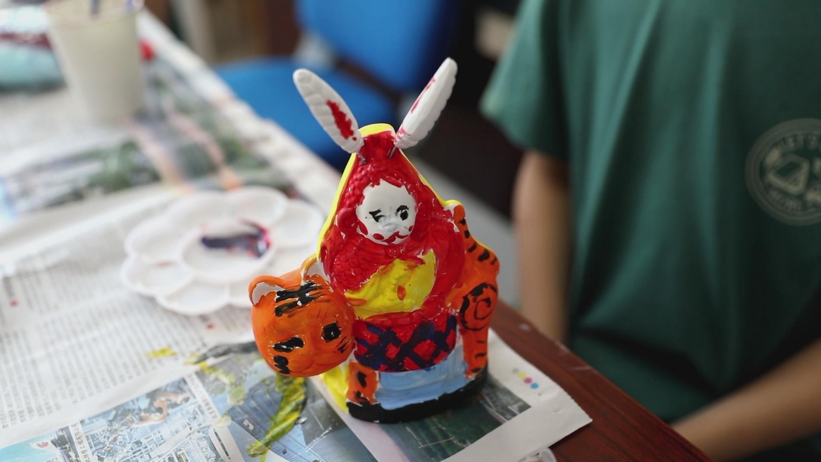 居民:这是我今天画的兔爷,我主要选择了红色,因为我觉得红色比较喜庆,我准备送给我的家人们,祝我的家人们中秋节快乐。