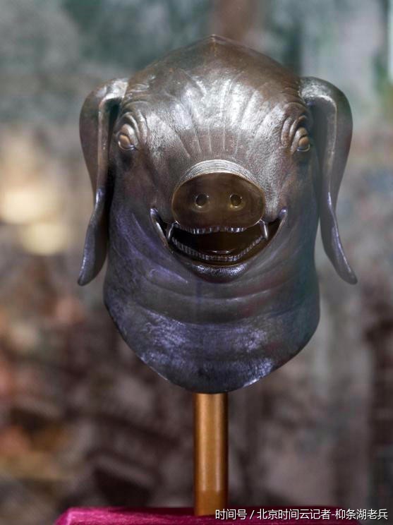 9月9日,参观者在拍摄展出的圆明园兽首铜像。近日,圆明园十二生肖兽首铜像中的“牛首、虎首、猴首、猪首”在南京亮相展出,吸引众多参观者前来观赏。