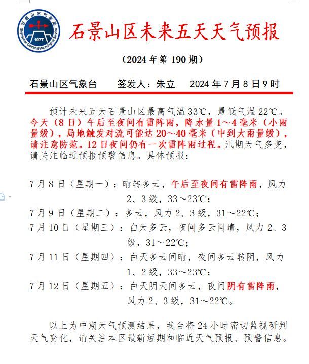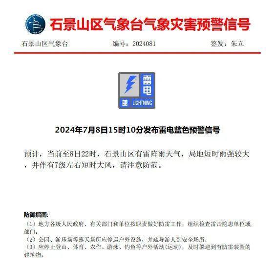 石景山区气象台7月8日15时10分