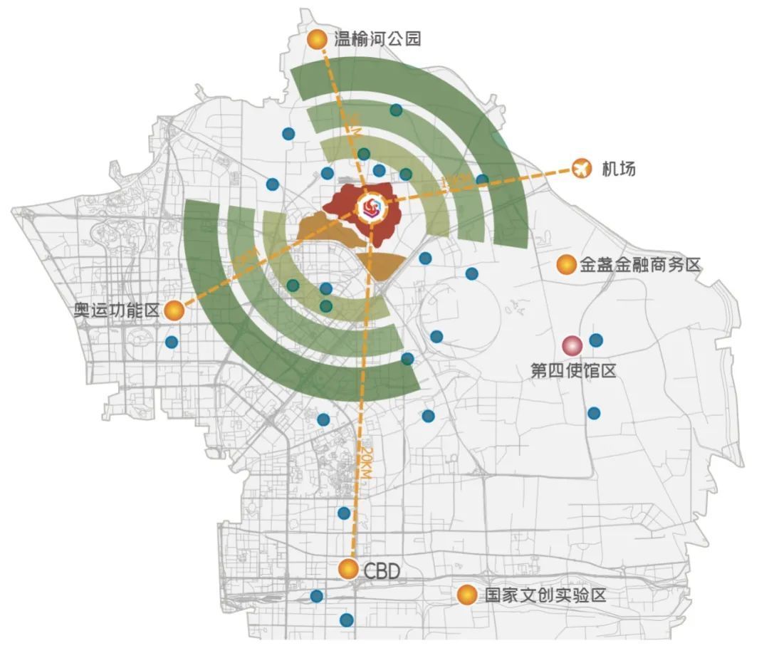在空间布局方面,国际人才社区的建设更加突出区域功能优化,统筹区域空间资源,形成“一核两翼三区多点”的空间布局。以电子城北区为核心,打造具有辐射带动效应的国际创新研发核心区域,依托电子城西区和大望京,打造国际创新研发的成果转化和服务保障之翼,形成产业配套区、综合服务区、宜居休闲区等三个不同层次的区域,同时在全域内从教育、医疗、文化、生活服务等方面对国际人才社区进行多点服务支撑。将逐步打造成创新研发的国际化发展高地、国际顶尖人才集聚区和人才政策先行先试区,通过辐射引领CBD、奥运功能区、国家文化产业创新实验区,形成人才社区与功能区联动建设格局。
