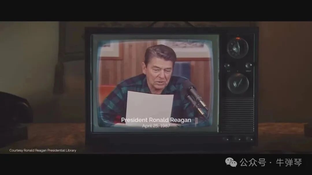 反正我仔细看了,还真是真的,里根在1987年讲的,当时讲了有5分钟,这则广告将最重要的部分段落,剪辑成一分钟。