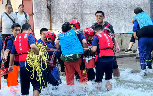 救援队伍运送被困群众