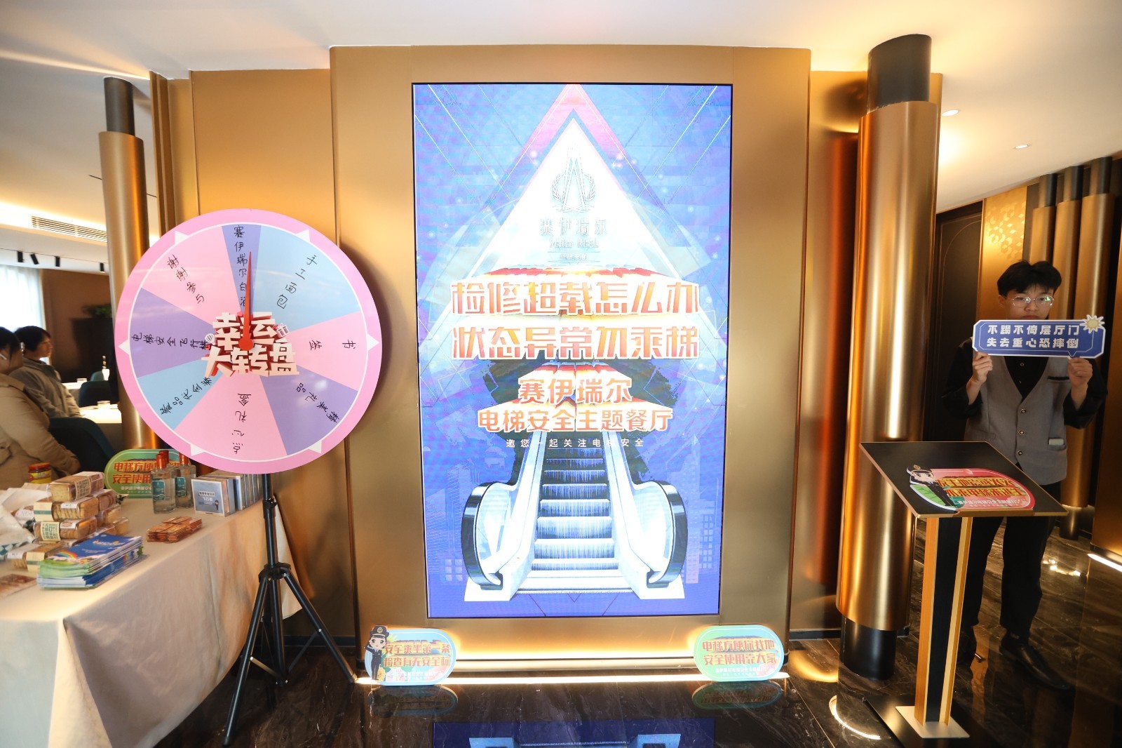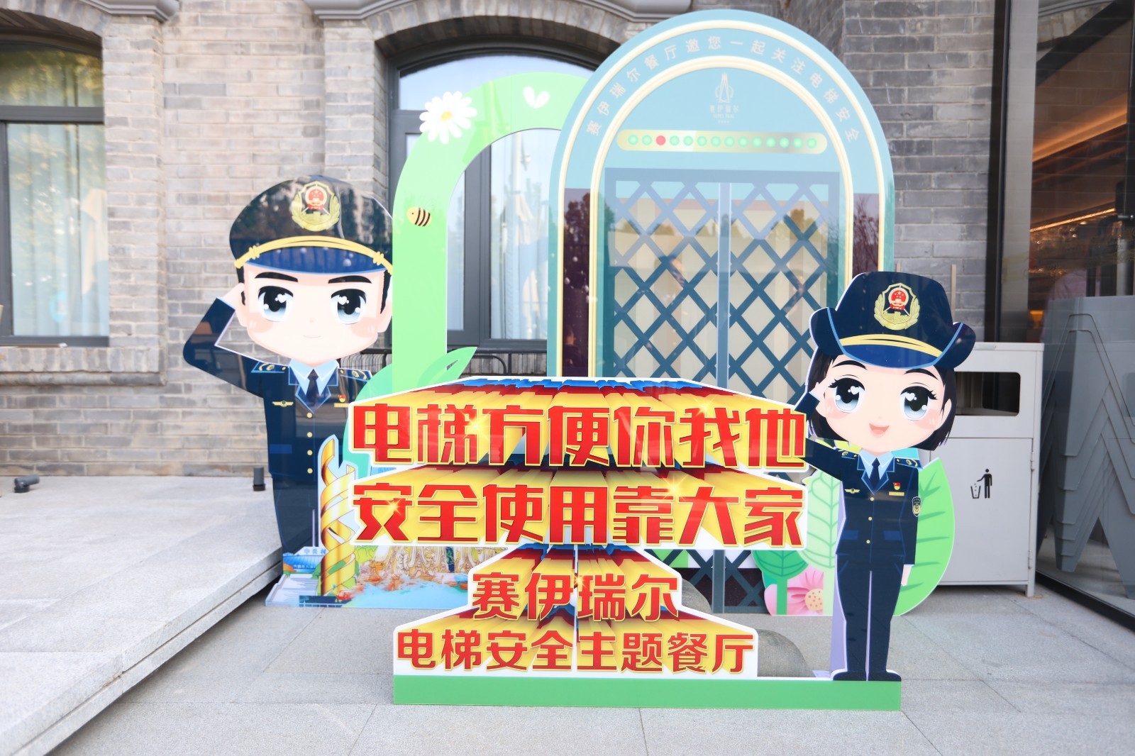 “电梯方便你我他,安全使用靠大家……”“安全乘坐第一条,检查有无安全标……”电梯安全主题餐厅位于海淀区龙徽1910文化创意产业园赛伊瑞尔丝路美食店,其进出口区域及餐厅内部的电梯安全主题元素随处可见,走进餐厅,就能看到餐桌、墙壁、电梯候梯厅及电梯轿厢内等公共空间,均设有电梯安全知识标语、宣传视频和展板,通过丰富多样的方式和大众喜闻乐见的形式,将电梯安全科普知识等元素巧妙融合于餐厅布局,打造氛围感体验,让消费者在就餐时潜移默化接受熏陶,在休闲中提升对电梯安全的关注度,增强安全意识。