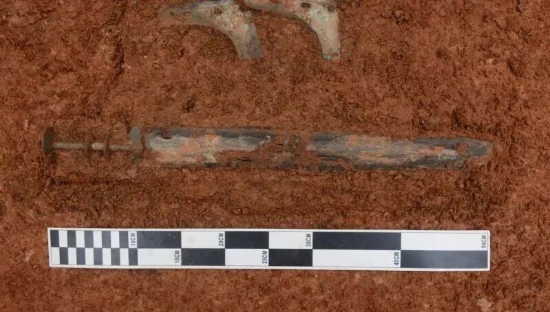 ▲考古工地发现铜剑