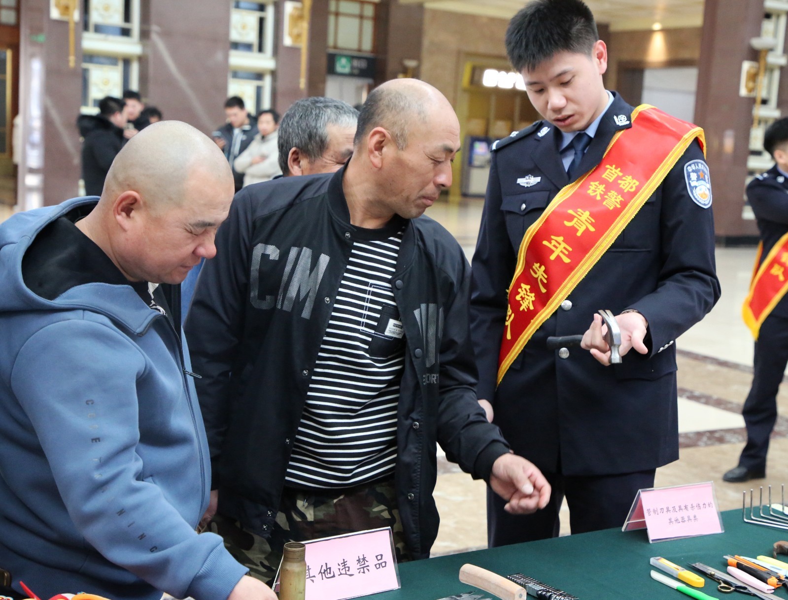 北京站派出所所长武超介绍,还有一周时间2025年春运就要到了,近期北京站的客流量明显增多。为迎接第五个中国人民警察节和即将到来的春运,向广大旅客积极宣传安检常识,1月7日,北京站派出所携手北京站业务科在北京站进站大厅联合开展了安检宣传活动。活动现场,除了摆放印有禁限带物品宣传展板外,还在展台上分类展示查获的各类禁止、限制携带物品,为前来咨询的旅客进行讲解。据统计,活动期间,共发放各类宣传材料200余份,解答旅客咨询300人余次。