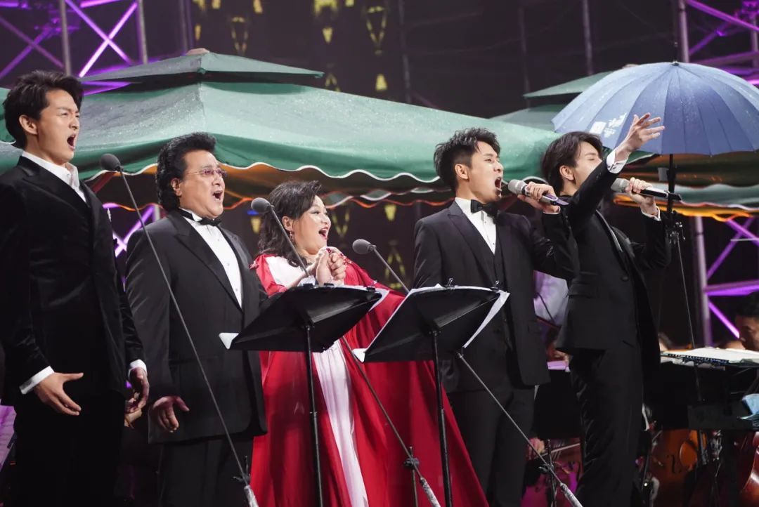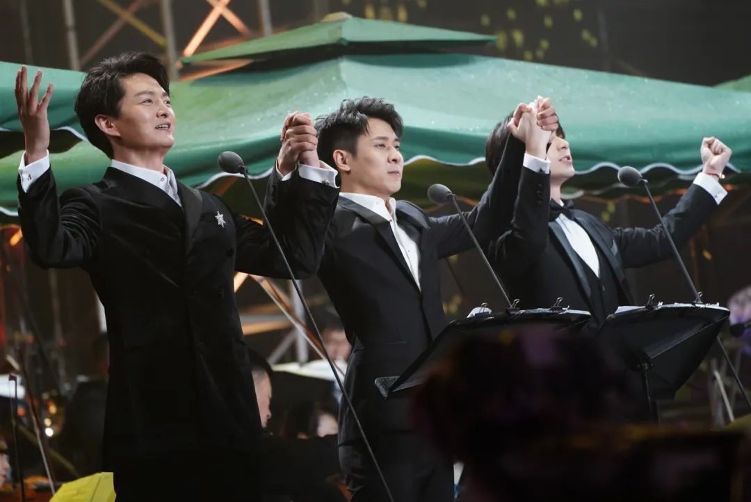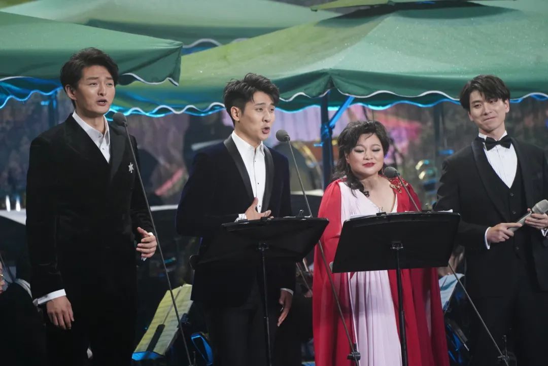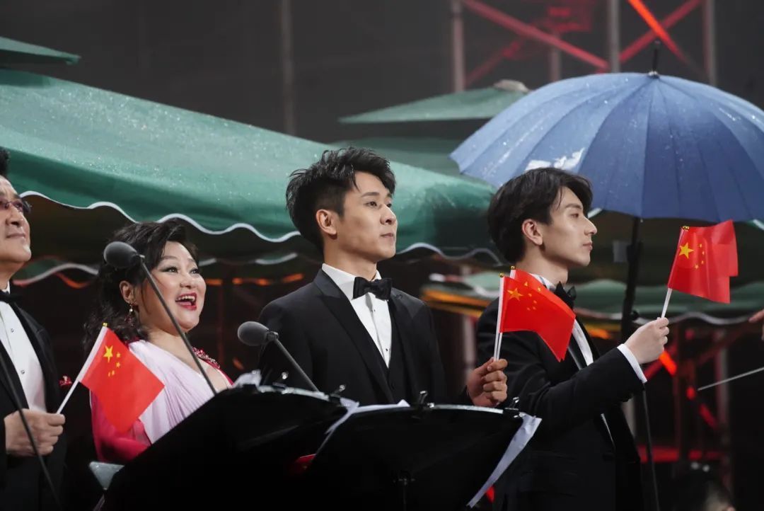 在蒙蒙的雾色中,一首经典老歌《北京颂歌》拉开了长城音乐会的帷幕。马佳、王凯、蔡程昱三位青年男高音,时隔两年再度合作,三位男高音以明亮而深情的声音,唱响对祖国和人民的无限真情。