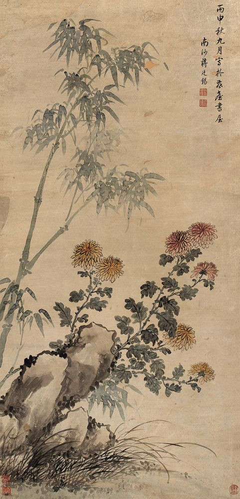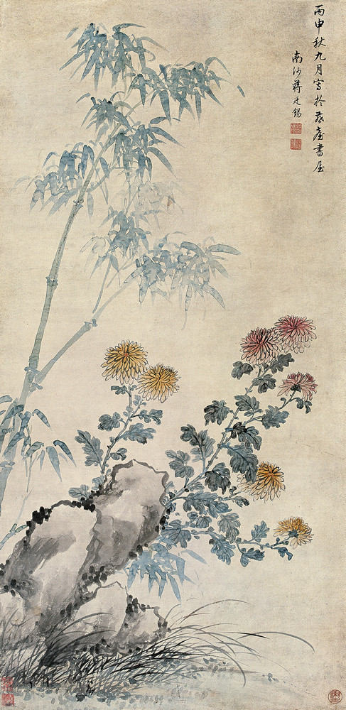 尺寸:179×89cm 题识:九秋图。康熙癸丑菊月写意。蒋廷锡。 钤印:蒋廷锡印、西谷、觉今是而昨非、望堂墨