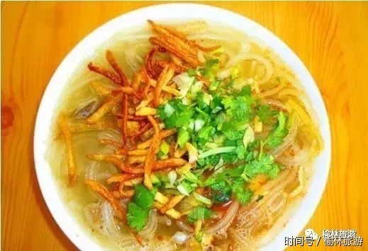 榆林当地人都知道铁锅炖羊肉,也爱吃羊肉,因为榆林羊肉食材好,尤其横山铁锅炖羊肉比较出名,一锅肉炖上两三个小时,味道和口感都不错,最后还能下点面,煮点菜,羊肉汤也特别好喝。来榆林要是没吃羊肉,那才叫遗憾。