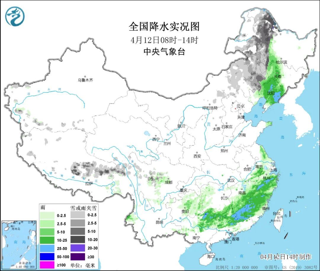 同时,因为高空冷涡+低空低涡+地面气旋影响,内蒙古东部和黑龙江西部出现明显降雪。南方因为江淮气旋和低空切变线影响,出现了对流降雨,华南北部遭遇线状对流。