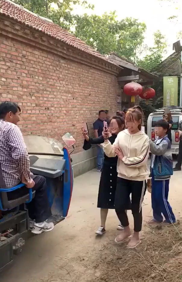 除此以外,在另一个视频中,大衣哥坐在农用三轮车上,一群小姑娘追着拍视频,后面还有几个小姑娘一直拿着手机拍,看来大衣哥似乎比以前更红了。