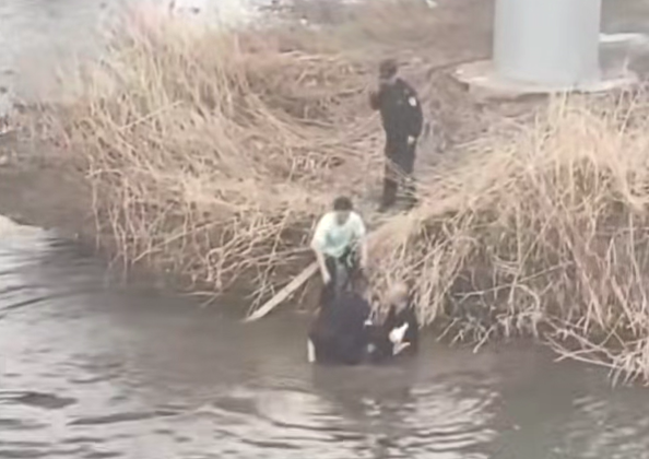 马刚奋力游至落水女子身旁,紧紧抓住其衣领,托住颈部与膝弯,向浅水区奋力游去。抵达浅水区后,他已体力透支、四肢僵硬,无力将女子抱起,却依旧跪在冰冷的河水与淤泥之中,一寸一寸艰难挪动,始终将女子稳稳托在水面之上,最大限度减少她与冰水接触。