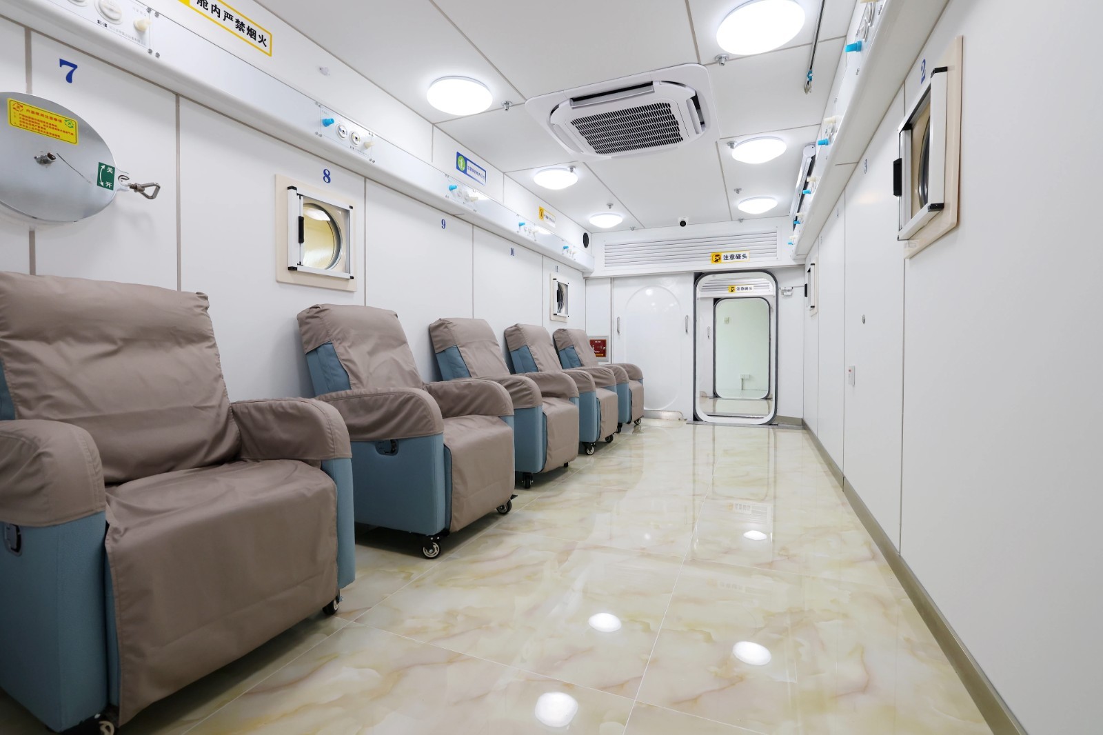 升级后的氧舱还特别优化了就医体验,航空级座椅配合全新影音设备,让患者在舱内的治疗过程更加舒适。“这次升级是按照2021年下发的国标要求,测氧仪由单路升级为双路后,对舱内氧气浓度的监测更加精准,一旦监测到仓内氧气浓度超标,高压氧舱将自动进行减压,整个过程更加柔和,减少患者的不适感。”怀柔医院高压氧科主任张春生介绍。