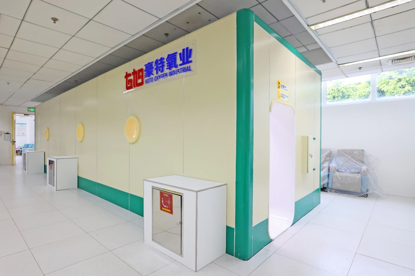 作为北京市首台方形高压氧舱,改造后的设备在保留原有创新设计的基础上实现全面升级,极大提升使用安全性。其模块化快装结构不仅满足全舱消毒的严格标准,宽型平移门设计也大幅提升了患者进入高压氧舱时的安全性。