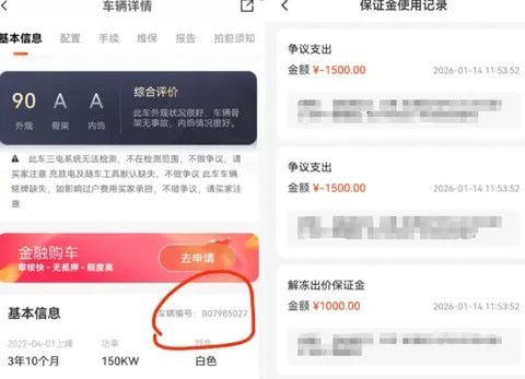另有消费者金先生反映,1月12日,他在优信拍平台竞拍中标一台新能源汽车,平台标注该车辆骨架、内饰均为A级,无损伤,仅左后门及附件更换。但检测后他发现,车辆右侧下底边梁存在切割、焊接修复痕迹,属于重大事故车相关损伤。