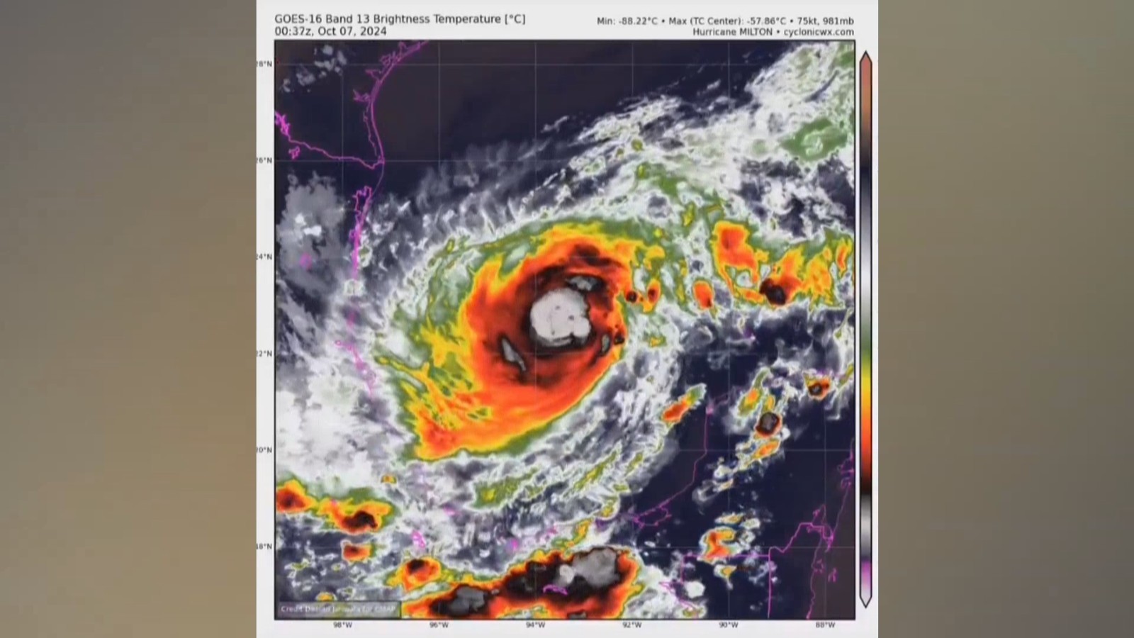 据美国全国广播公司报道,“米尔顿”目前最大持续风速为每小时128.7公里,并正加速向美国佛罗里达州西部移动。预计它在登陆前强度还会持续增加,最终可能以三级飓风的强度登陆佛罗里达州的希尔斯伯勒县或皮内拉斯县。