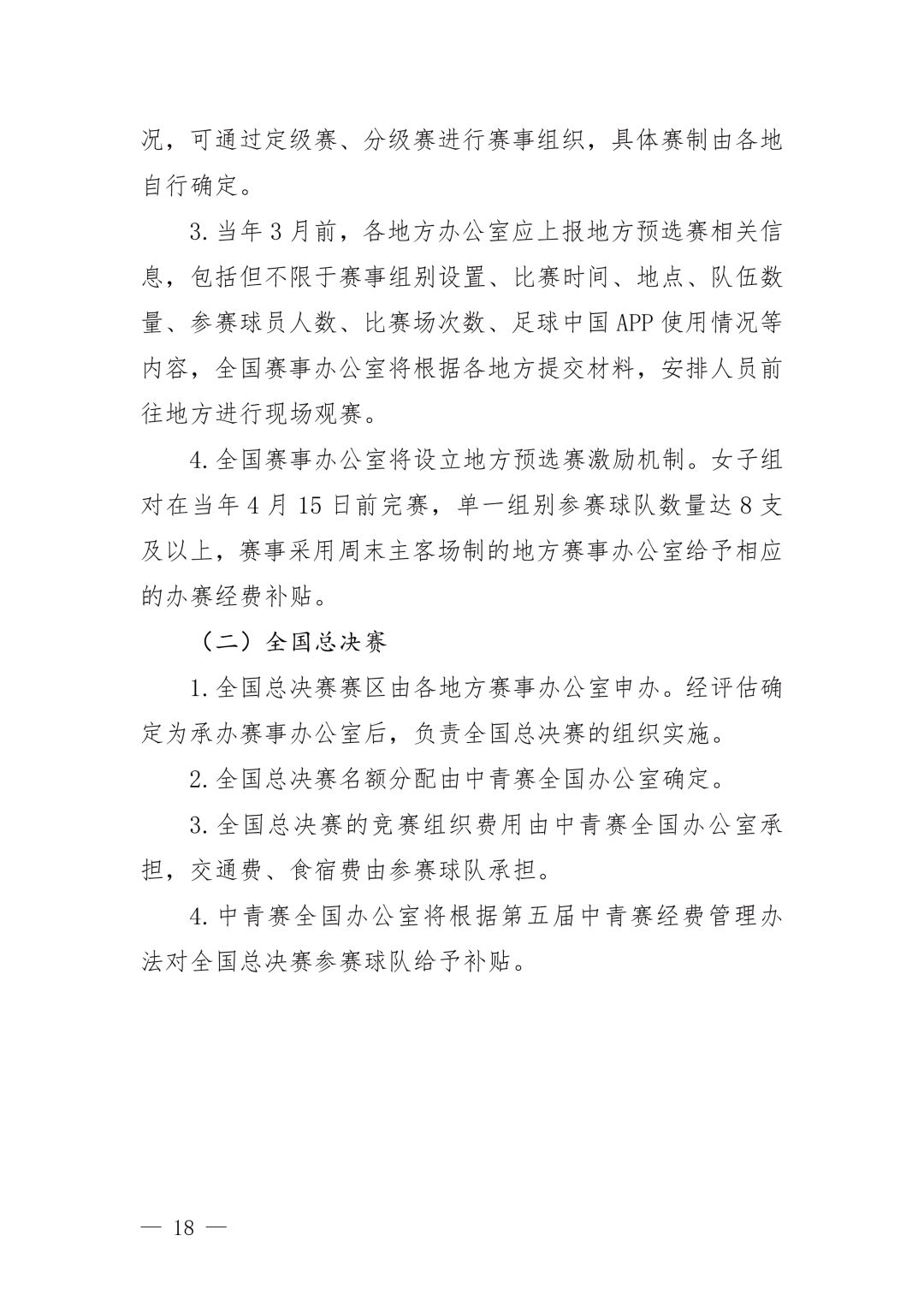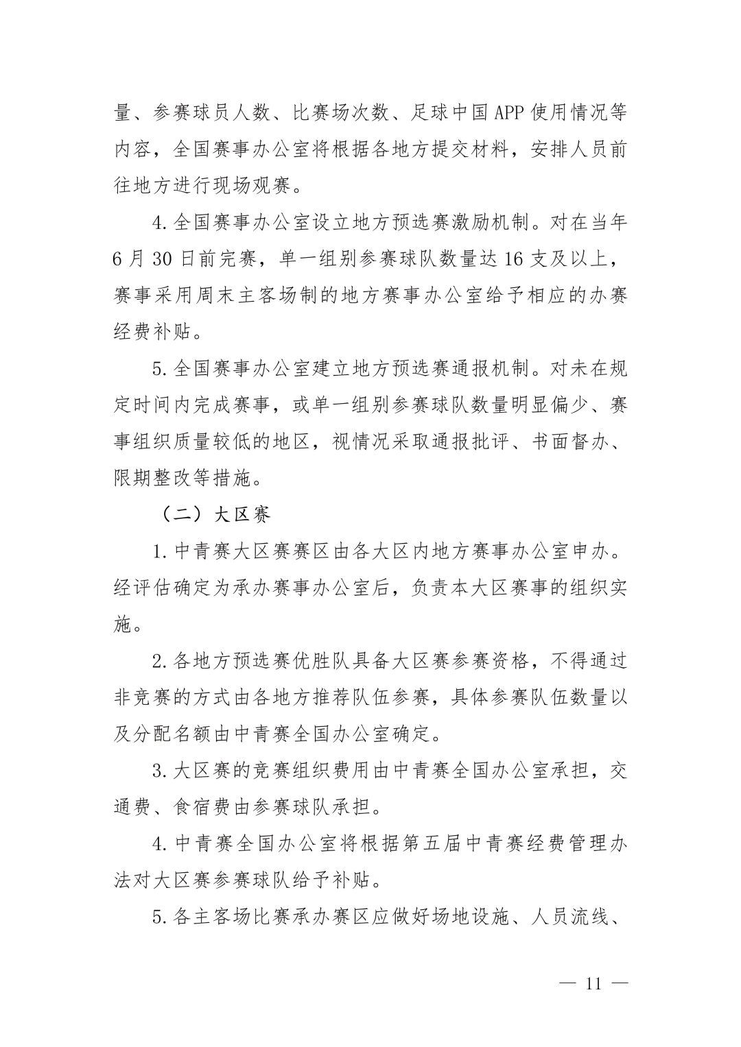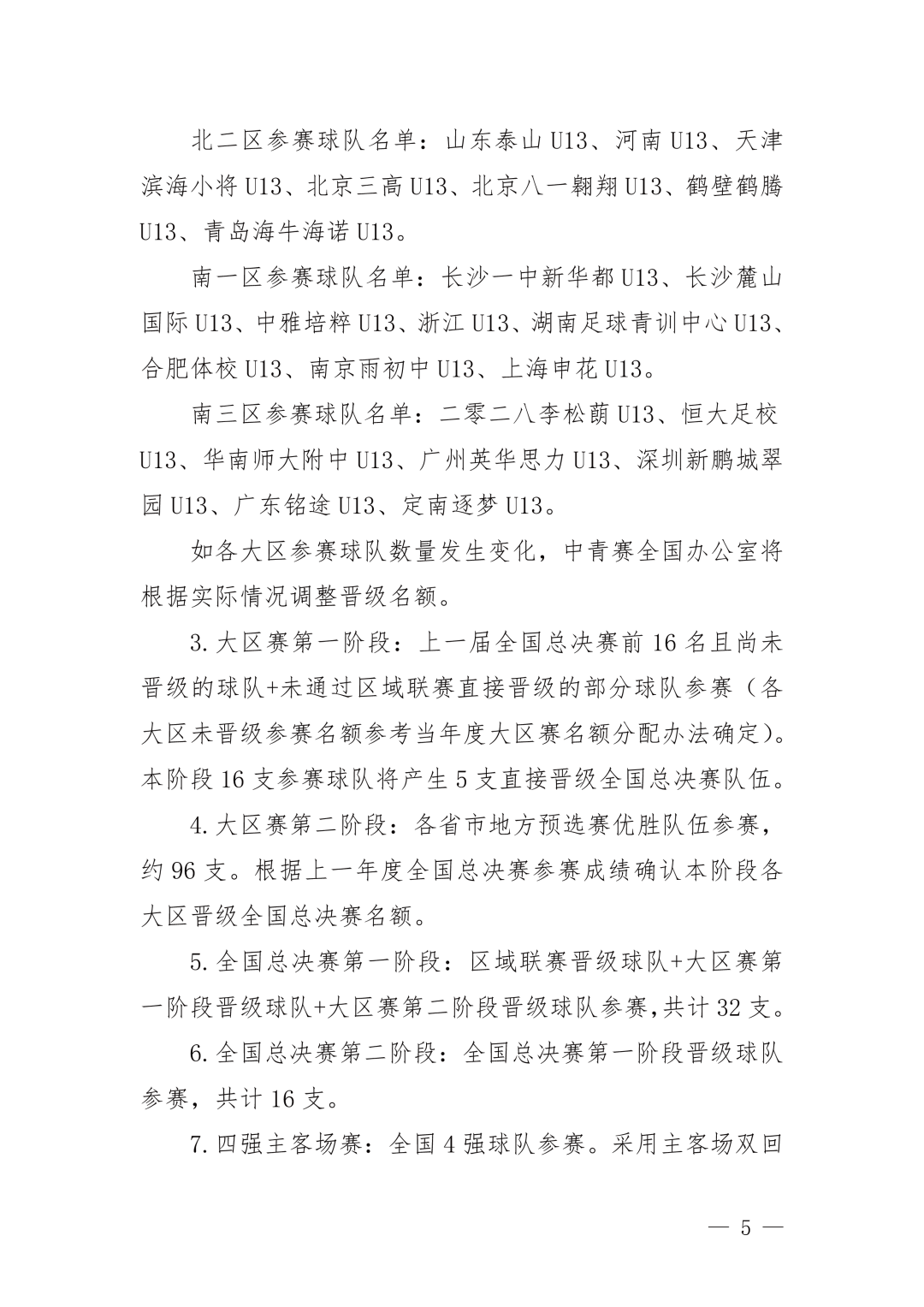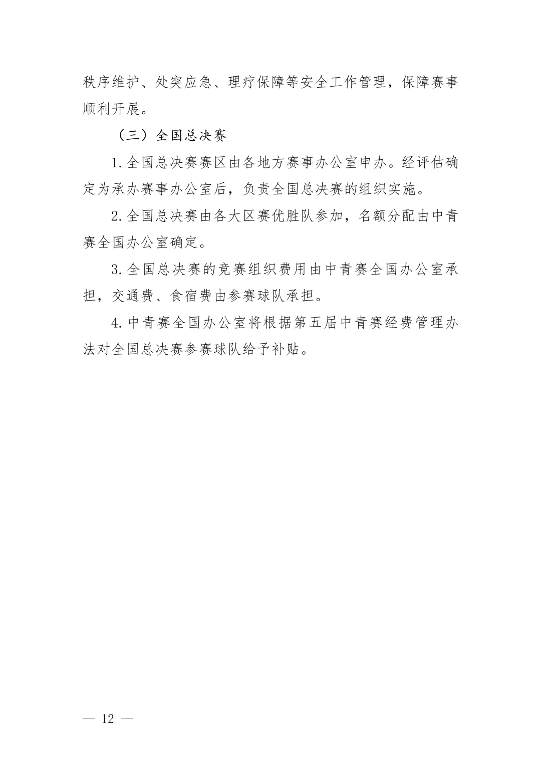 关于印发第五届中国青少年足球联赛赛事组织工作方案的通知
